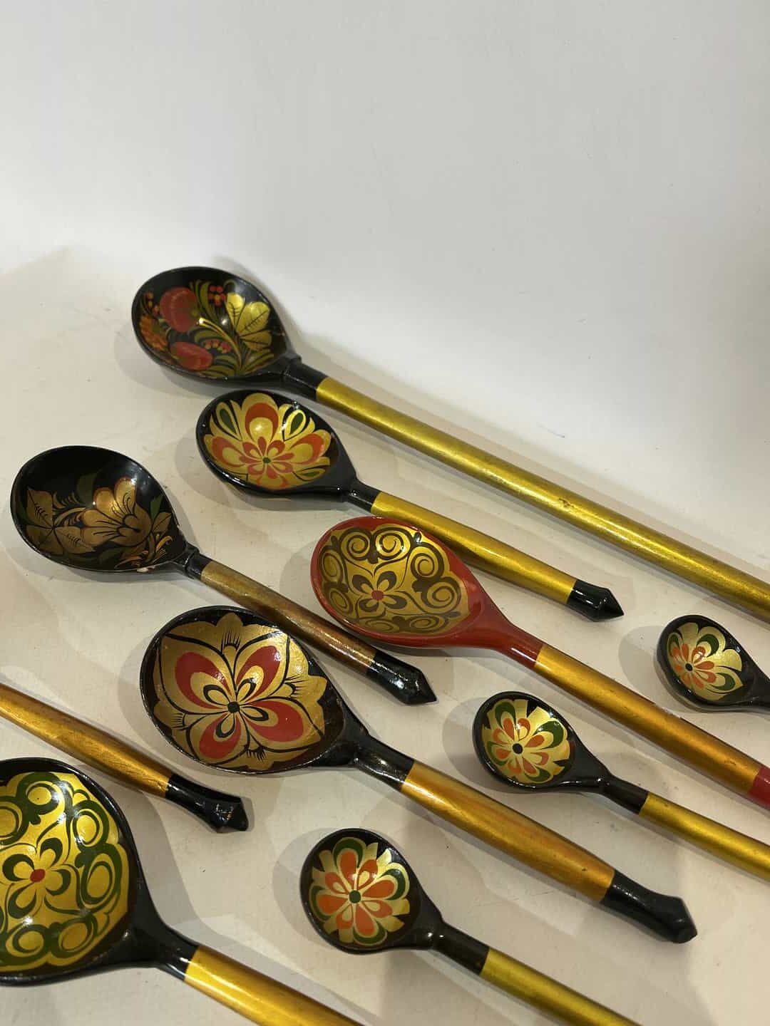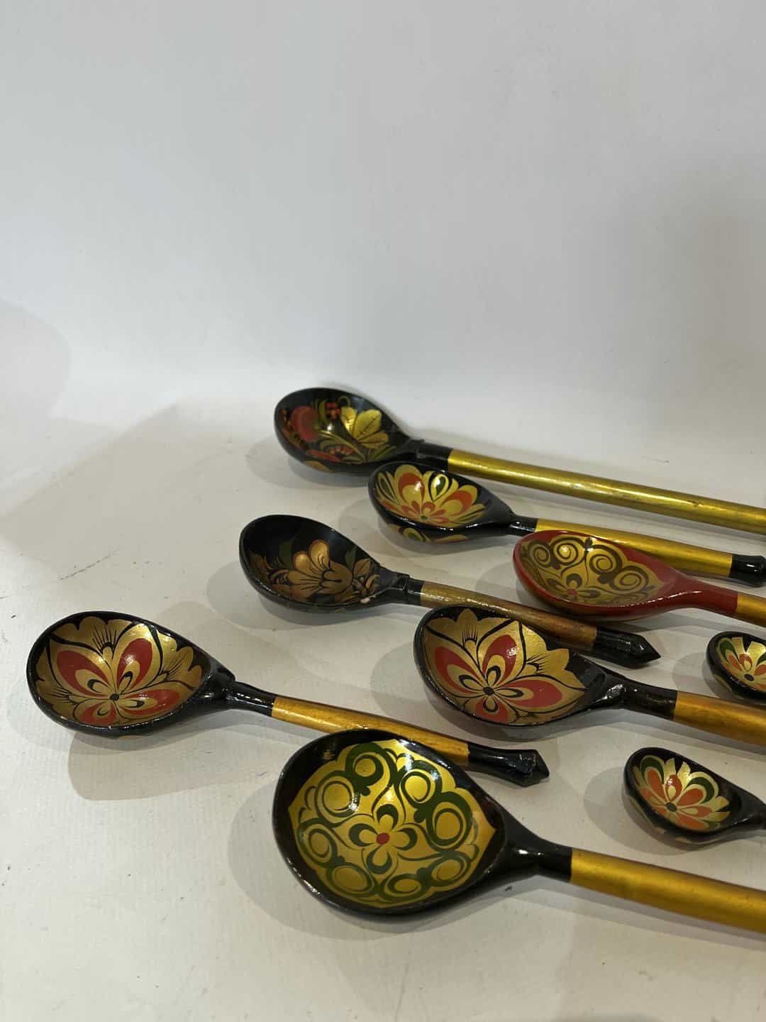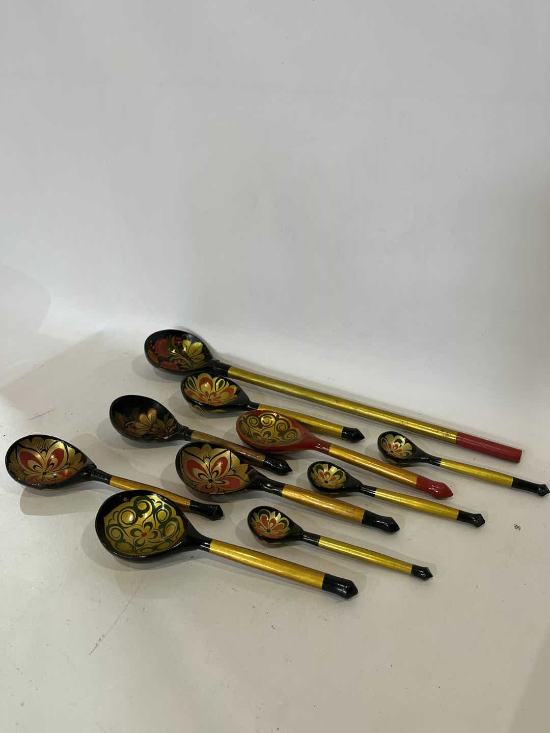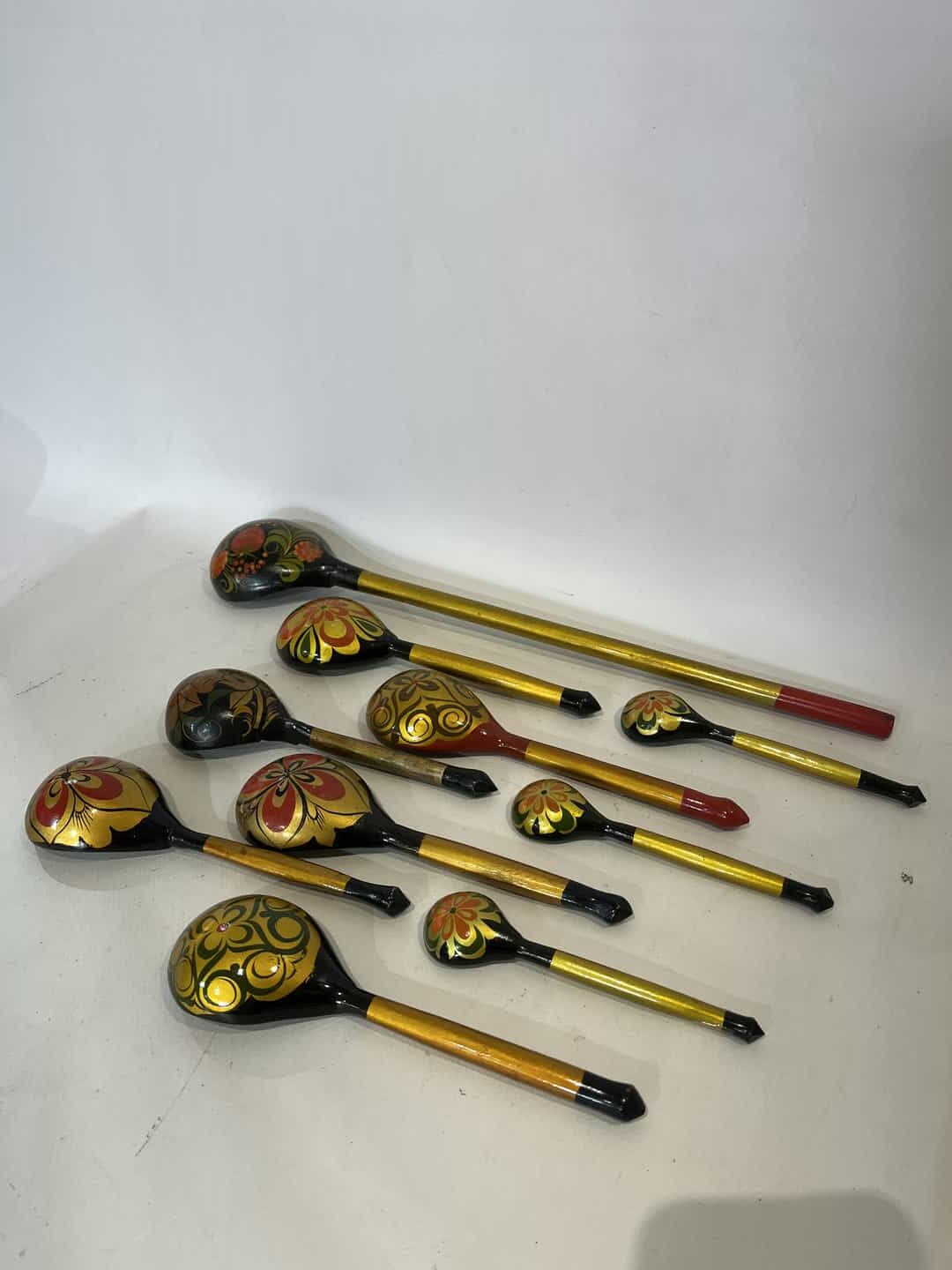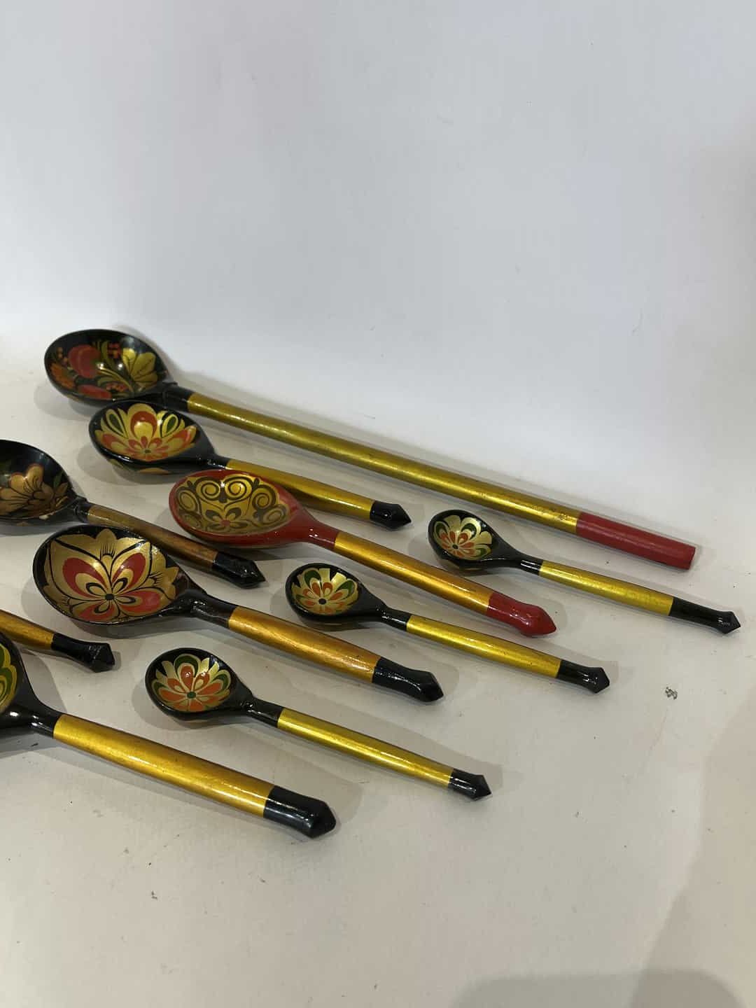Σετ 10 ξύλινες Ρώσικες κουτάλες σε στυλ Χοχλόμα 40cm , 19cm, 13cm