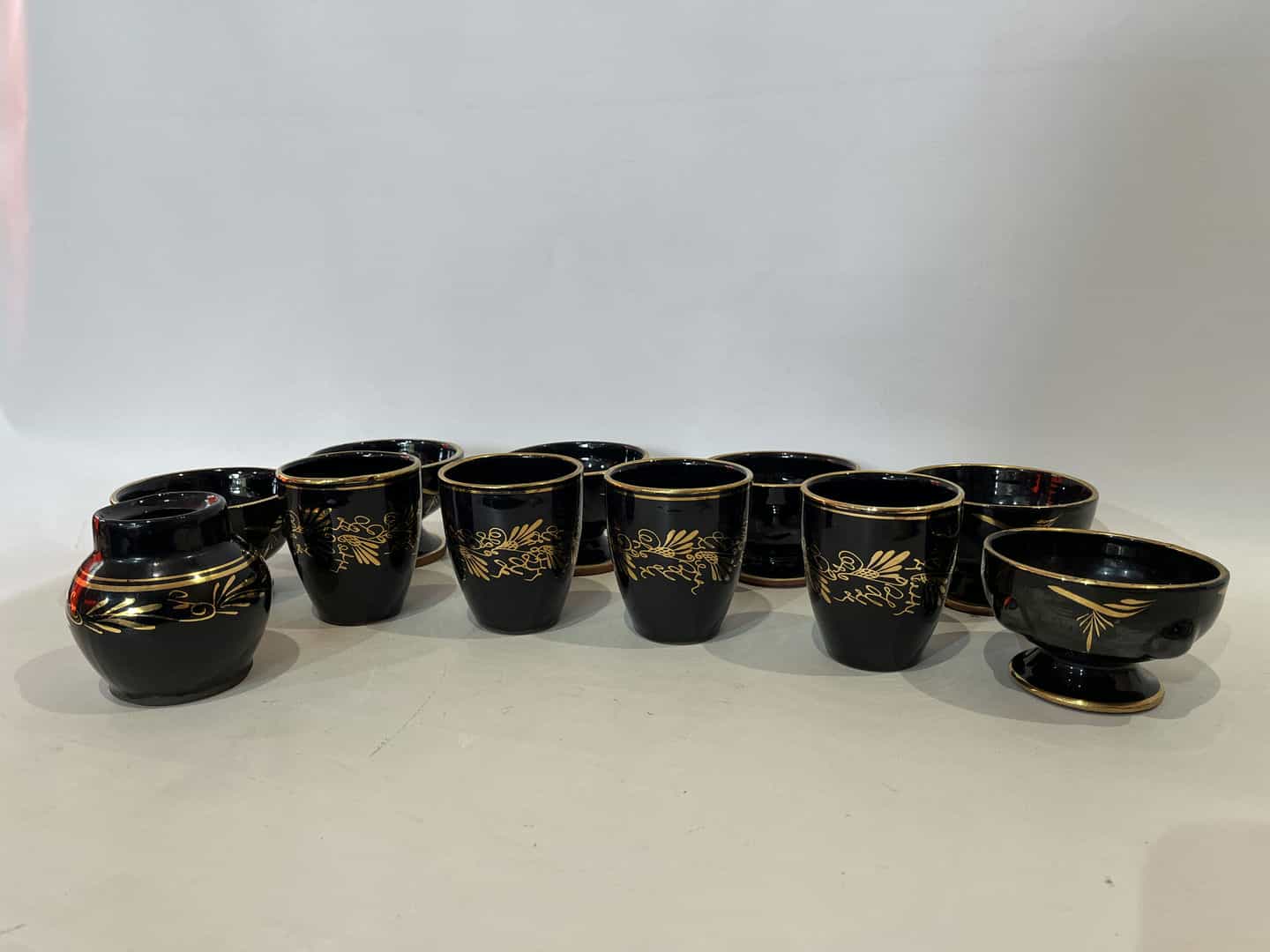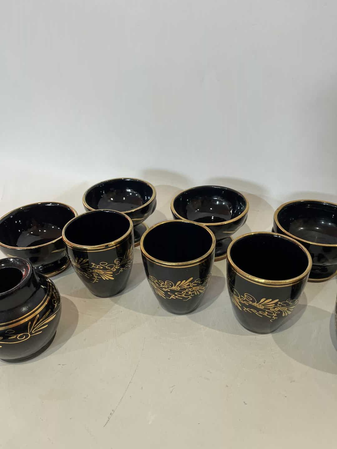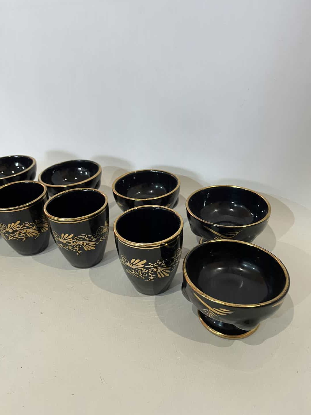 Σετ 11 κεραμικά ποτήρια/μπολ με χρυσά σχέδια