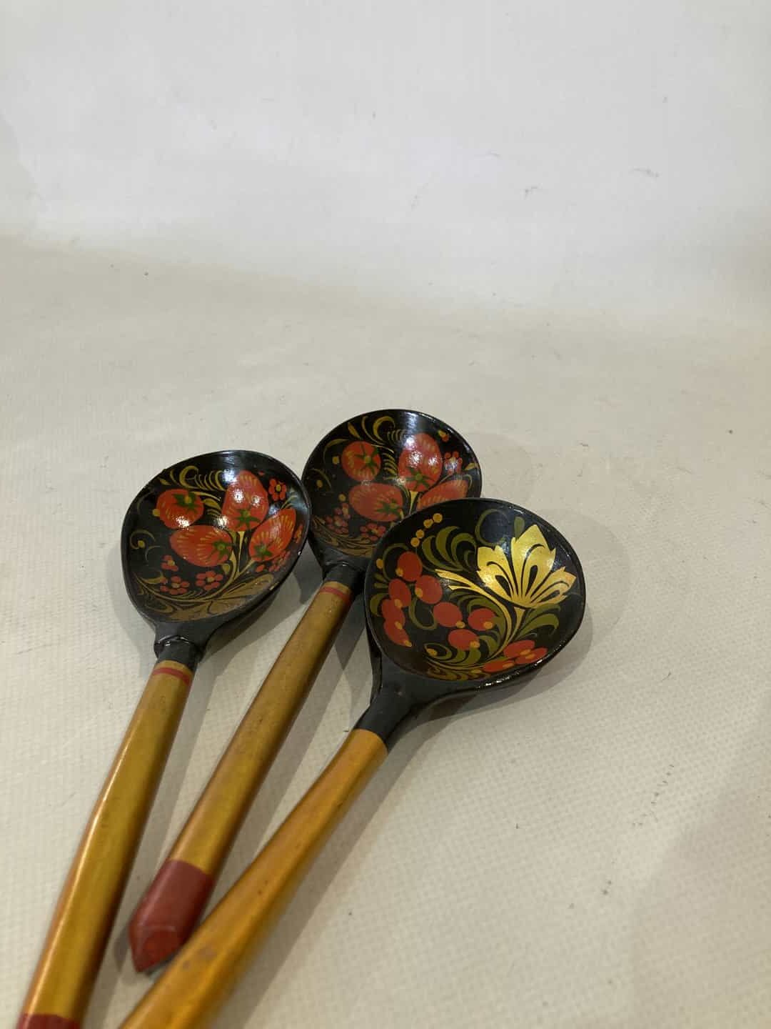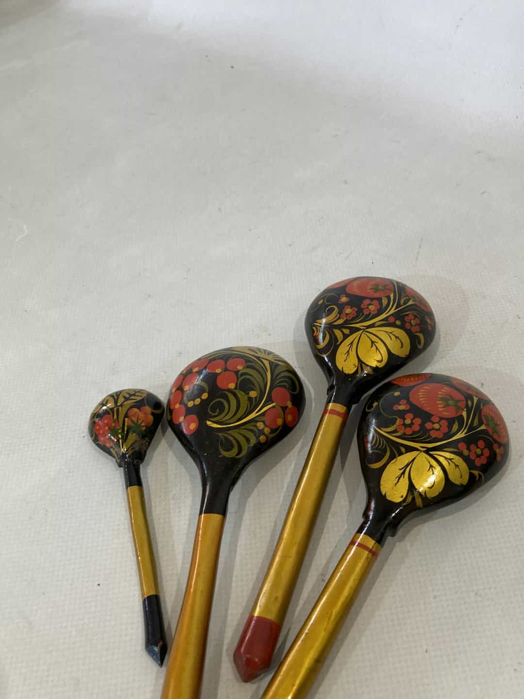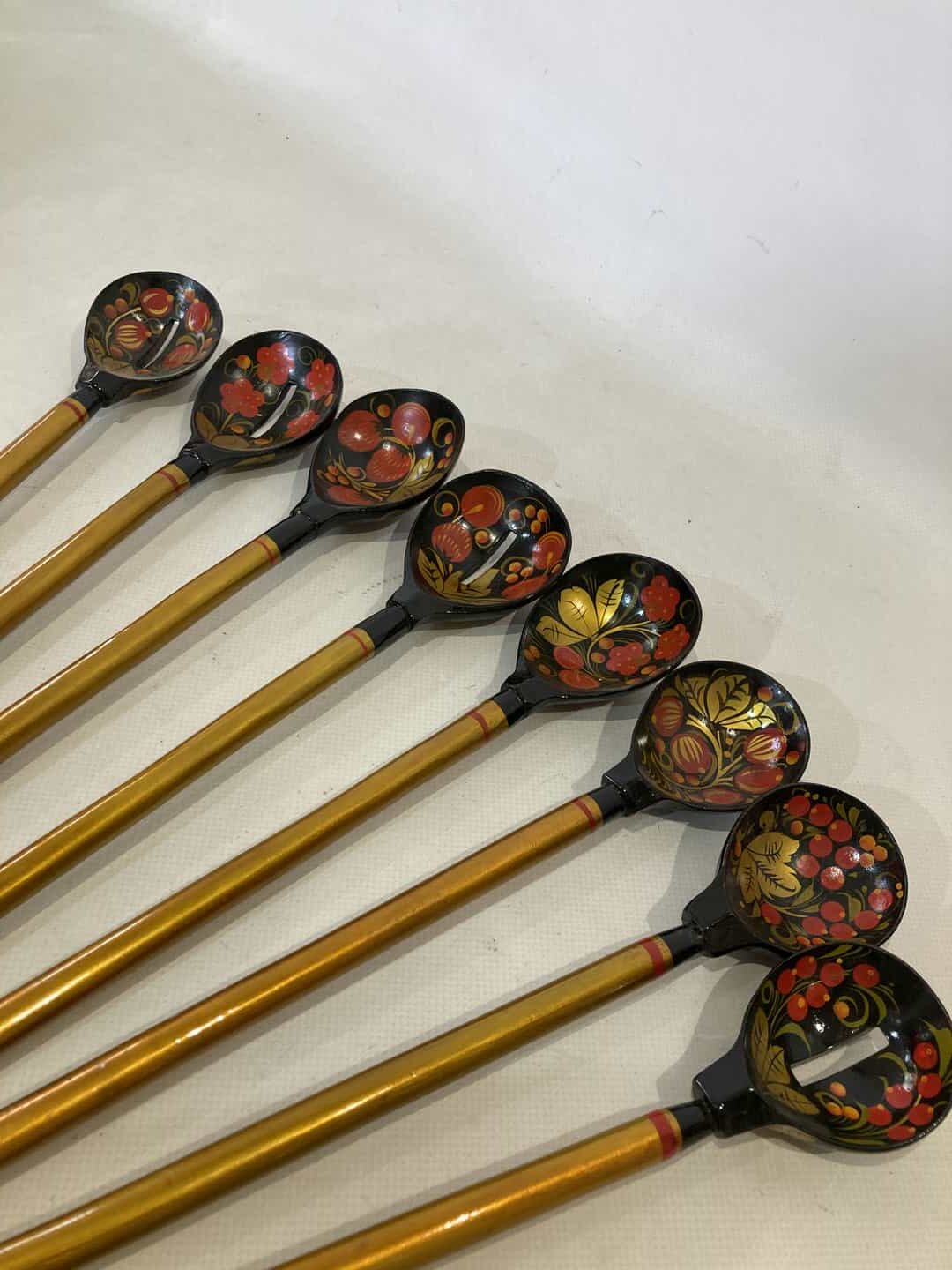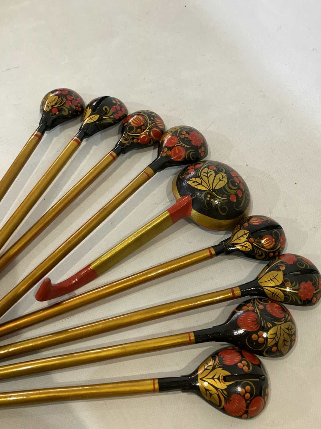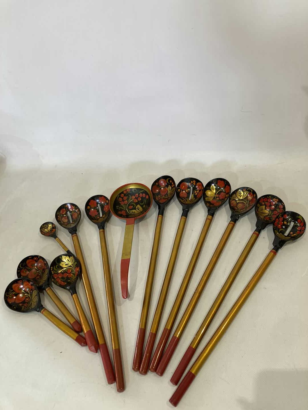 Σετ 13 Vintage Ρώσικα κουτάλια σε διάφορα μεγέθη με κόκκινη μύτη στο τελείωμα  ζωγραφισμένα στο χέρι 40cm   Κωδικός προϊόντος: #s9693