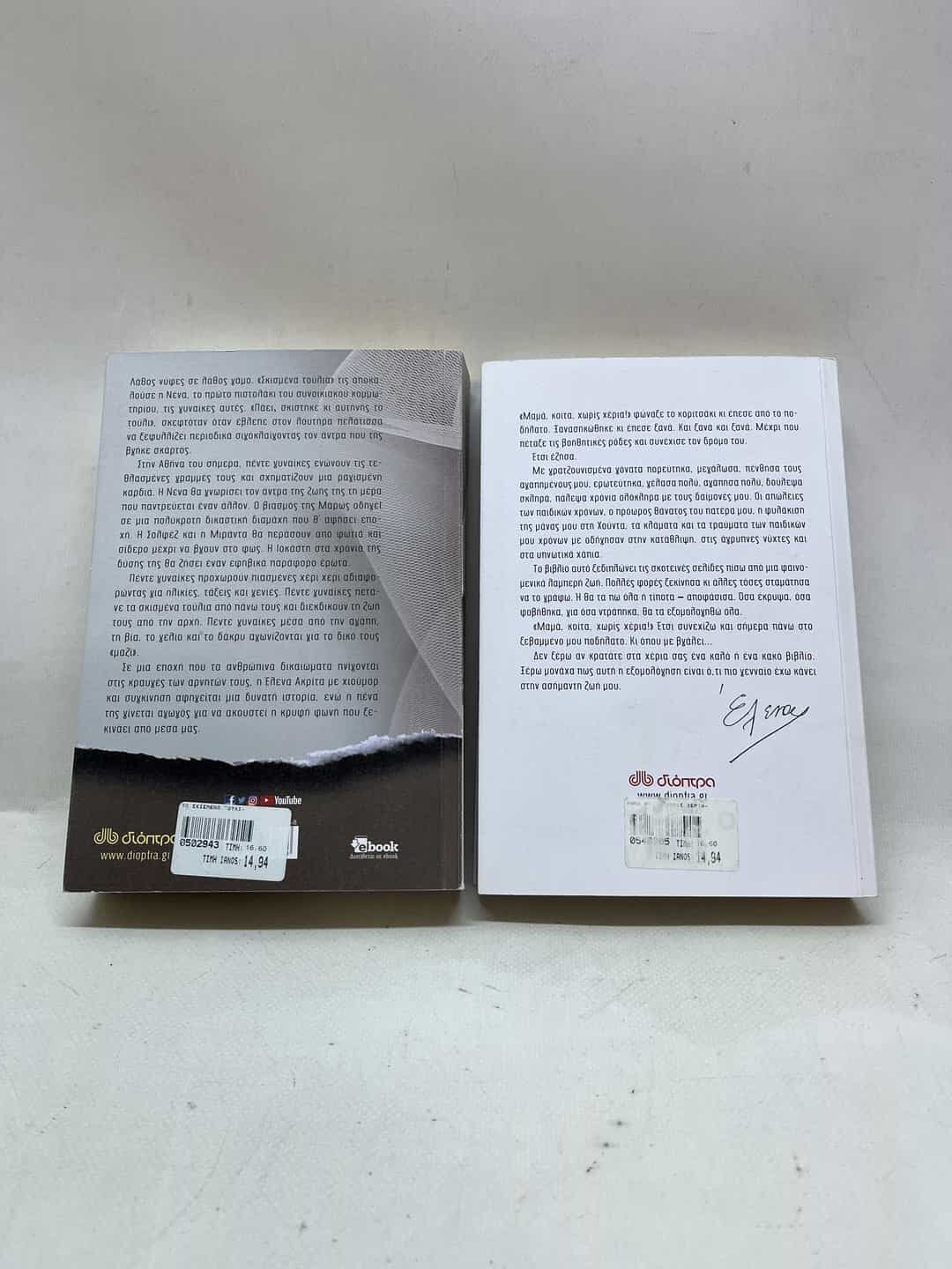 Σετ 2 βιβλία της συγγραφέως Ελενα Ακρίτα, εκδόσεις Διόπτρα