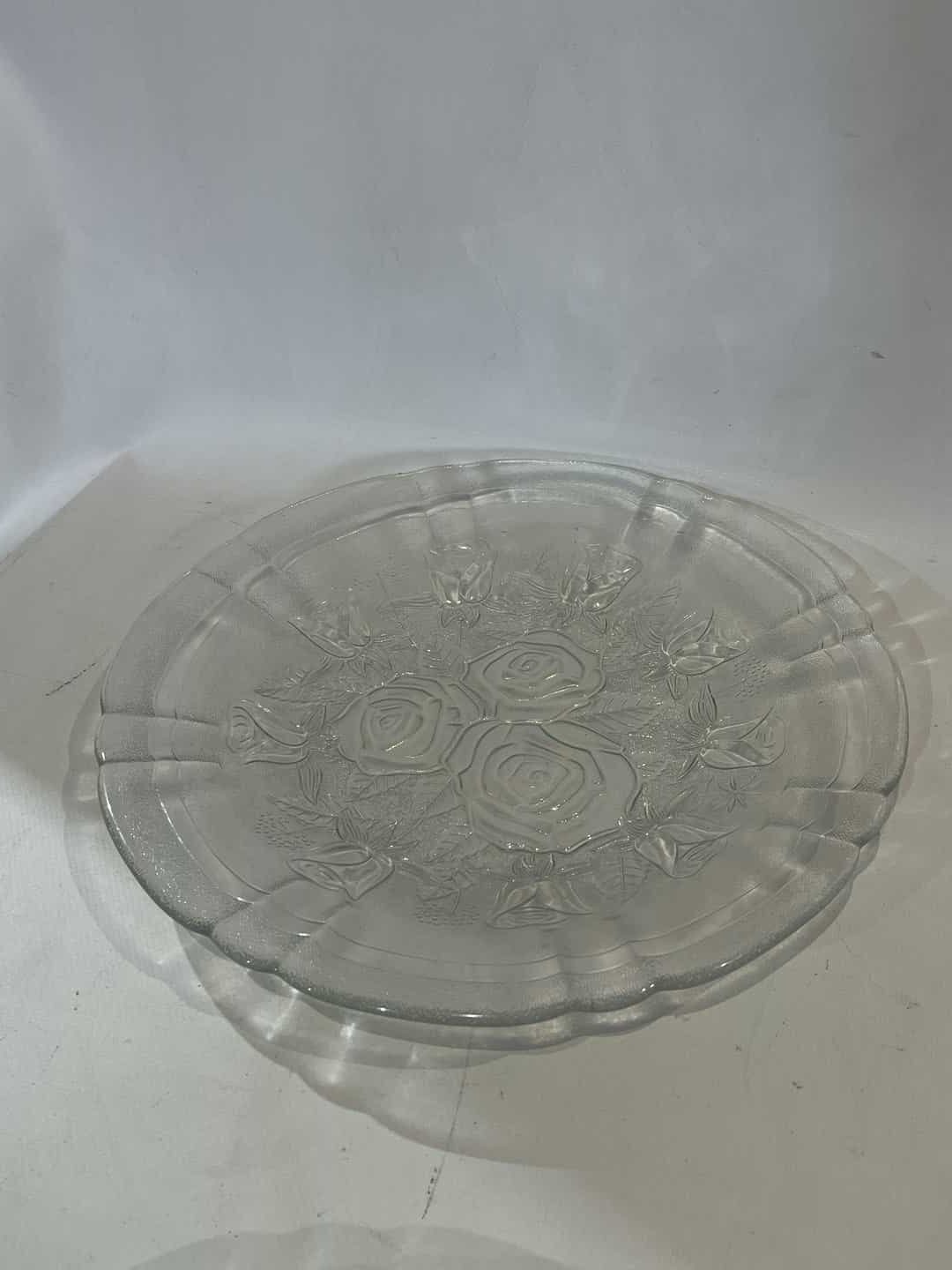 Σετ 2 γυάλινες πιατέλες σερβιρίσματος με ανάγλυφα σχέδια λουλουδιών και ιριδίζουσα όψη 29cm