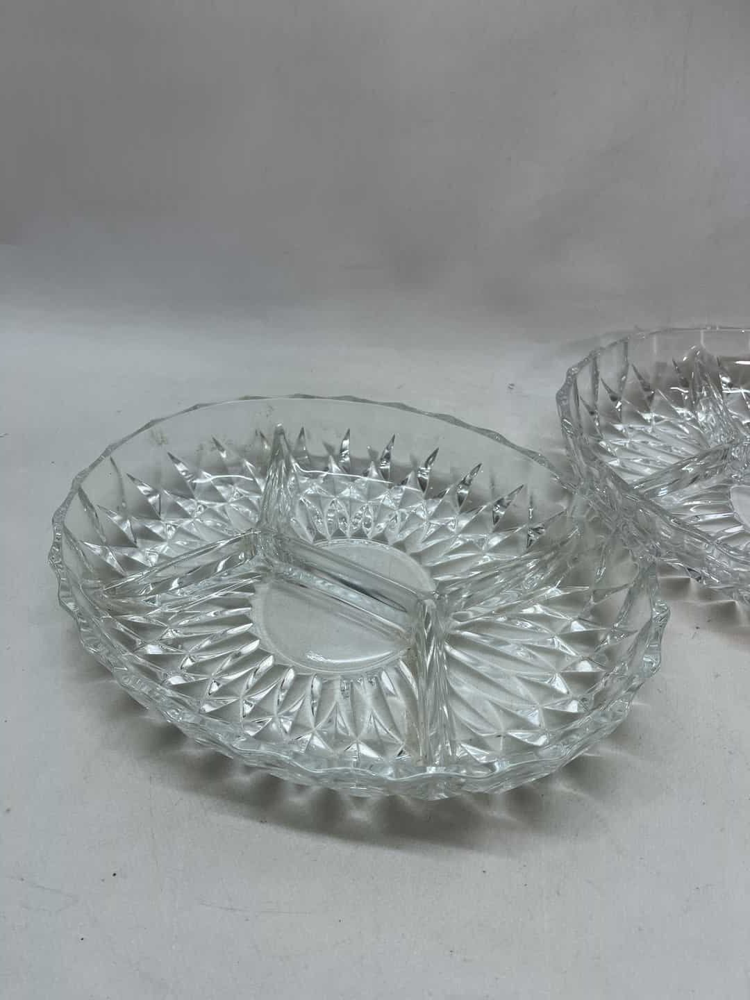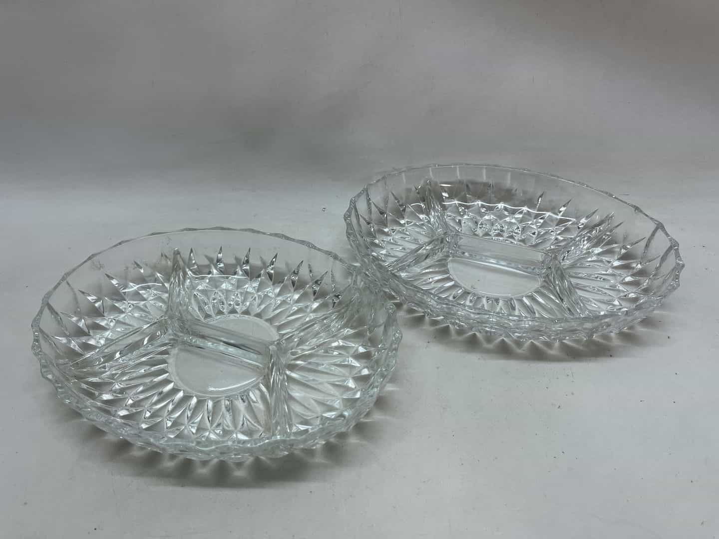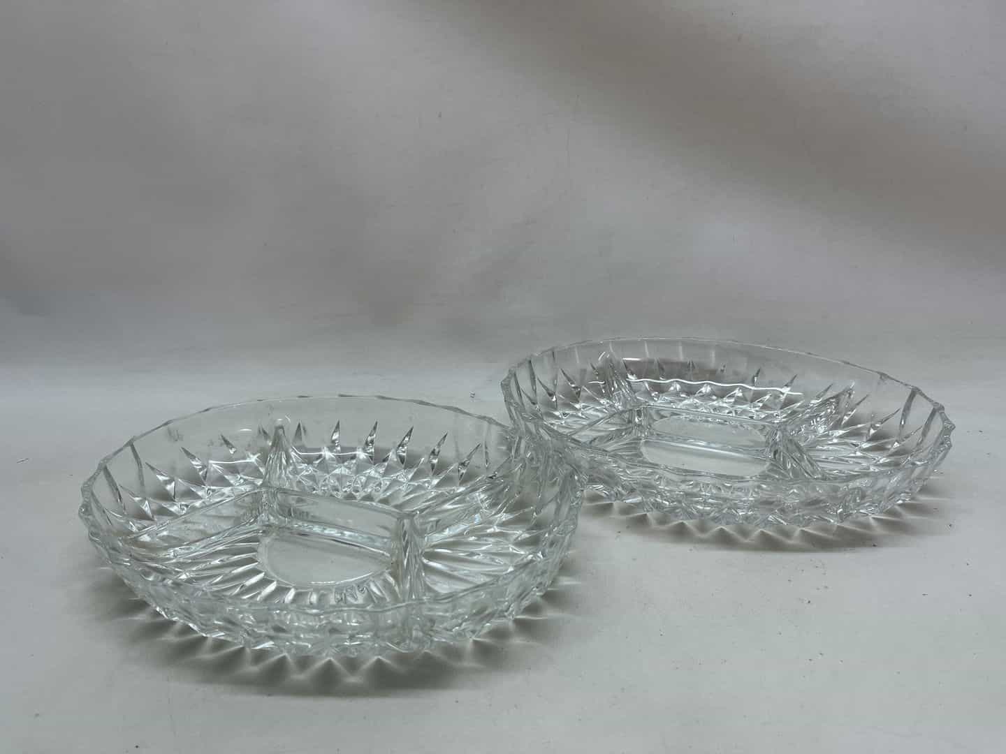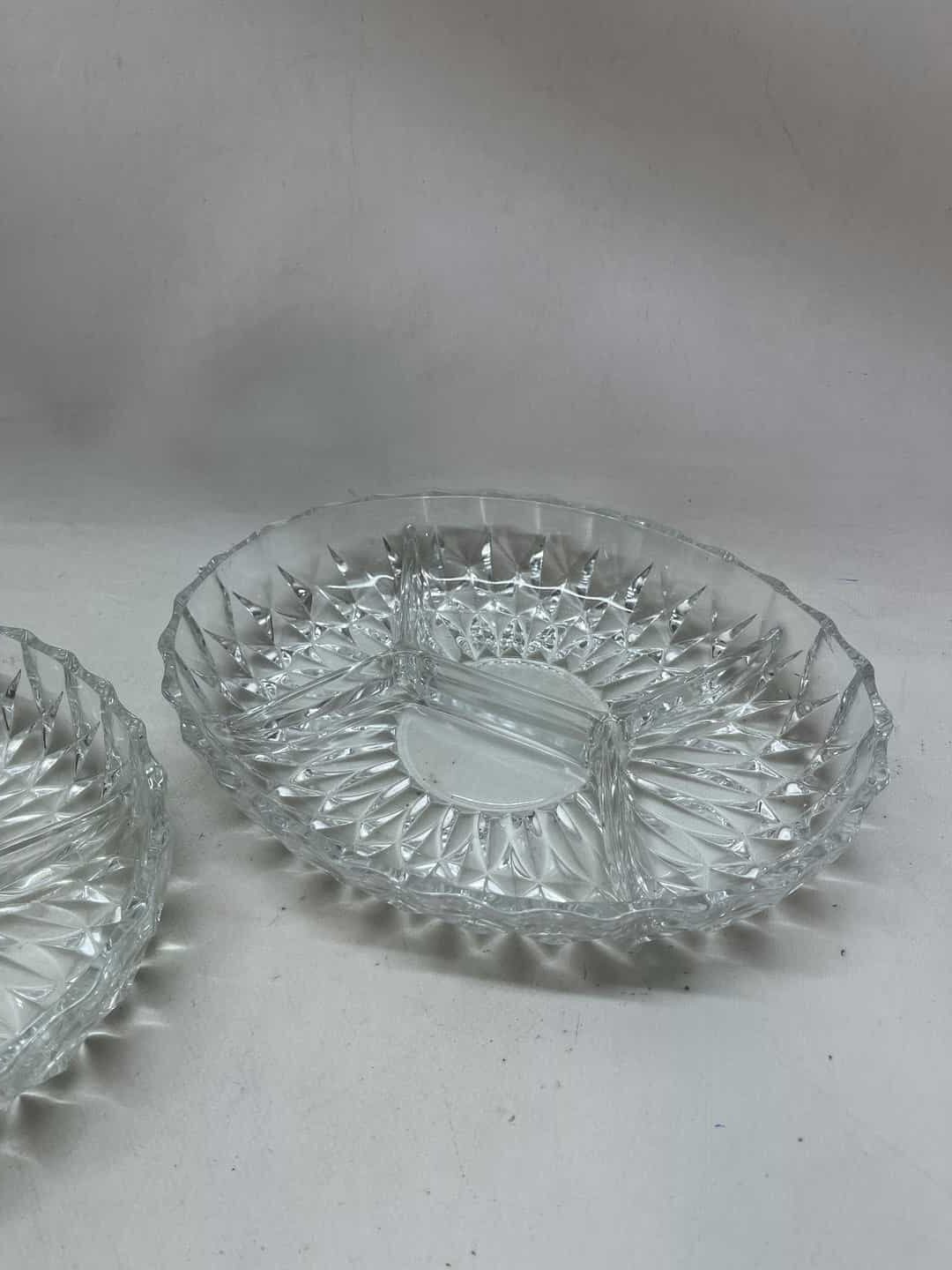 Σετ 2 κρυστάλλινες πιατέλες σερβιρίσματος για ξηρούς καρπούς 5x27x20 . Υπάρχει διαφορά στο χρώμα τους , καθώς η μία έχει δύο μικρά σπασίματα όπως φαίνεται στις φωτογραφίες Κωδικός προϊόντος: #s14835