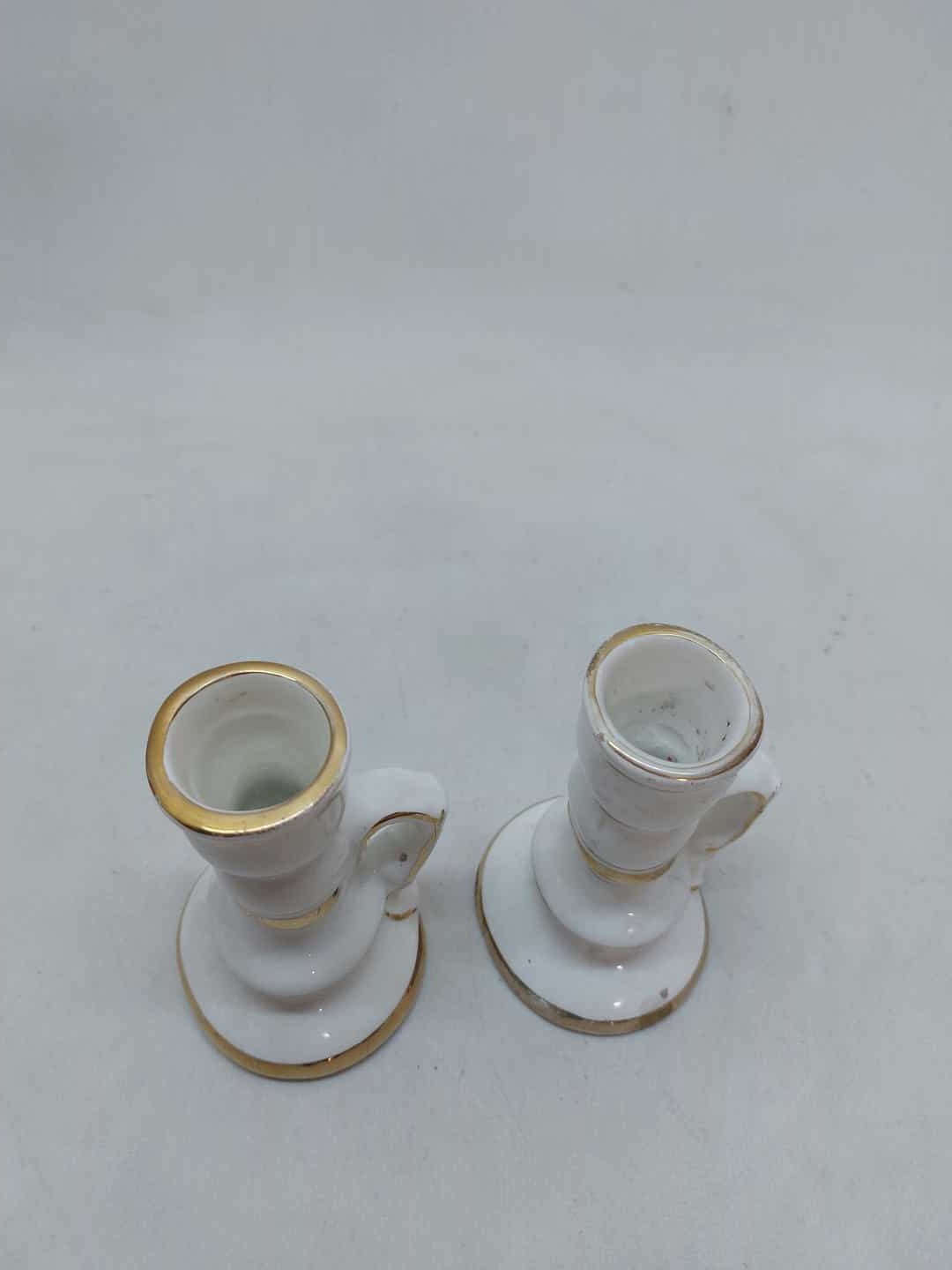 Σετ 2 λευκά κηροπήγια με χρυσές λεπτομέρειες 11x7cm (με ελάττωμα στην βάση του ενός, όπως φαίνεται στην φωτογραφία) Κωδικός προϊόντος: #s5582