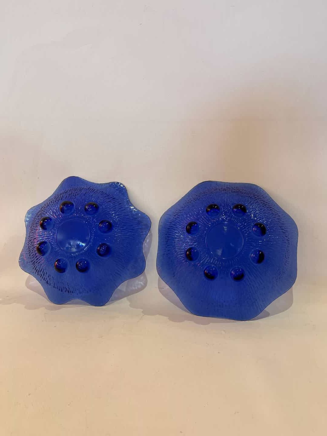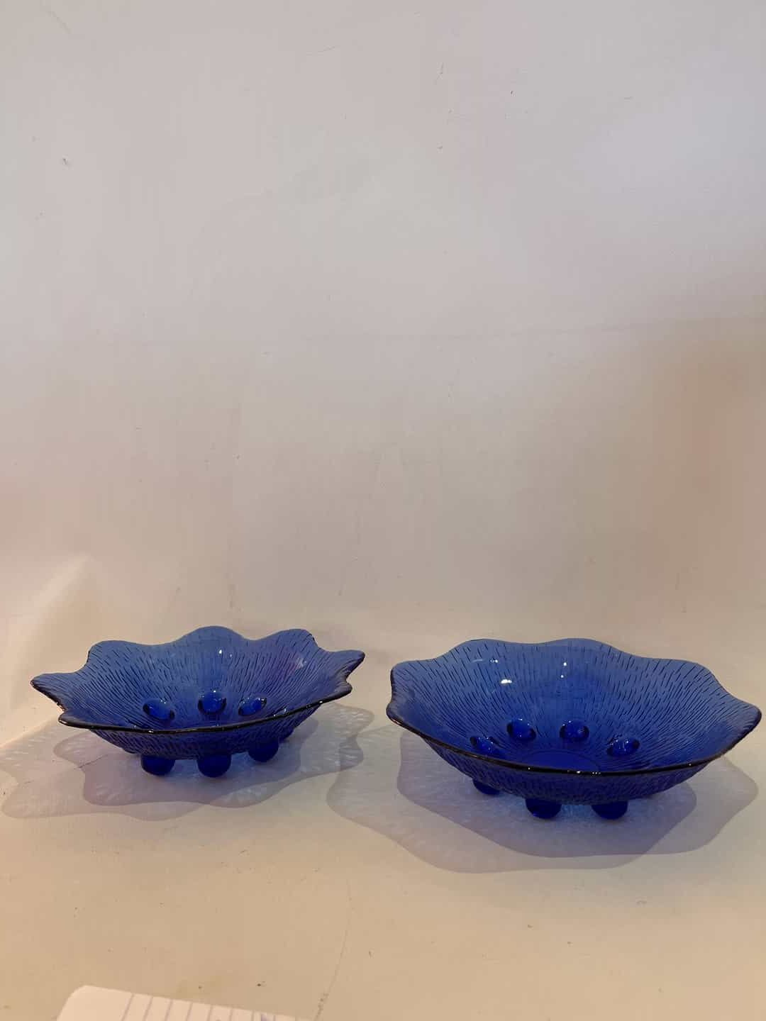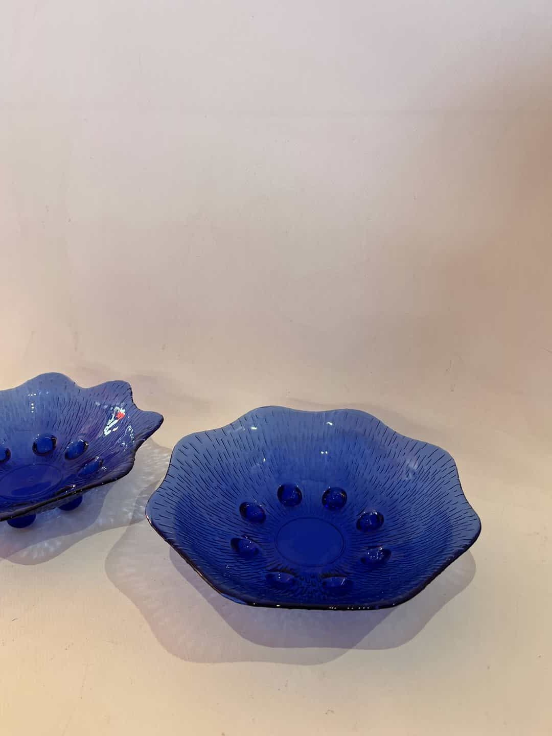 Σετ 2 μπλε μπολ σερβιρίσματος με ανάγλυφο μπλε γυαλί 6x22x22