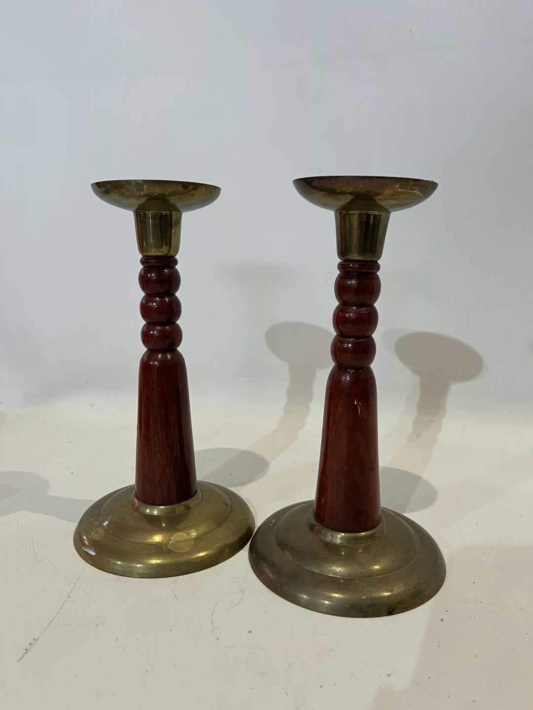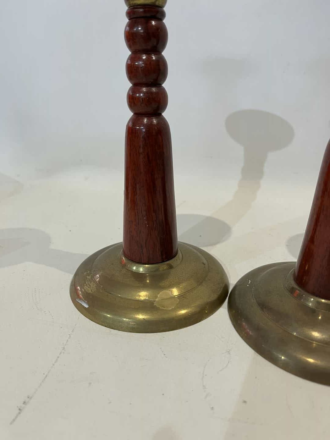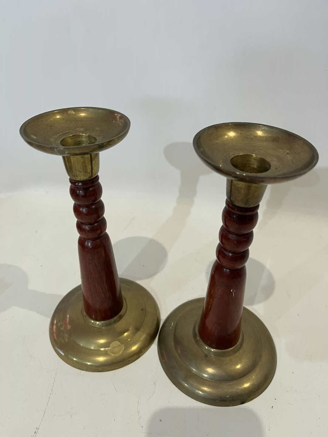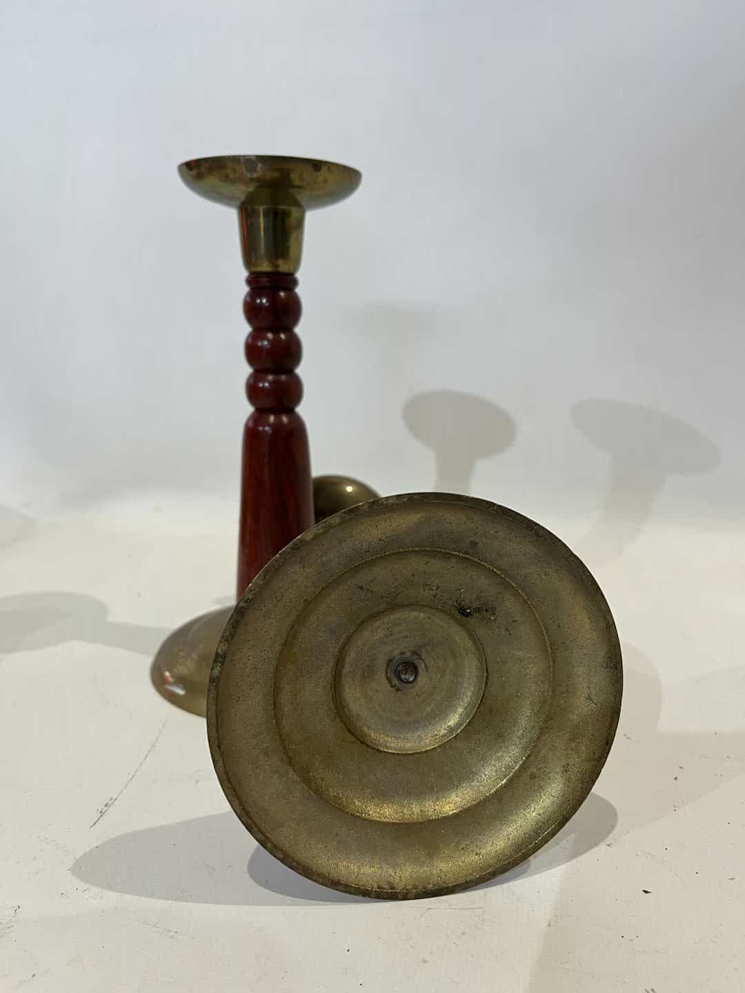 Σετ 2 μπρούτζινα κηροπήγια με ξύλινη λαβή 19×7