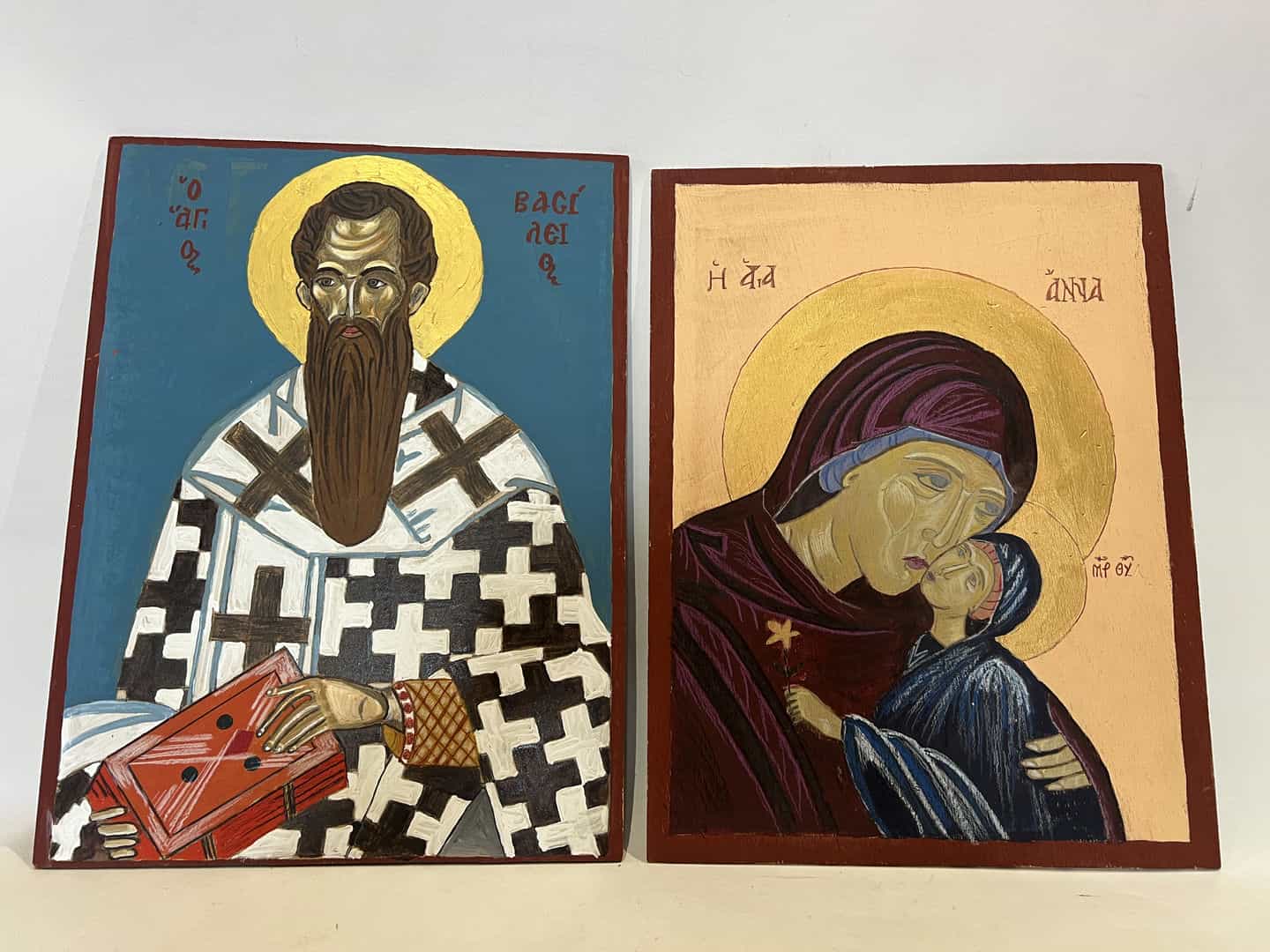 Σετ 2 ξύλινες εκκλησιαστικές εικόνες ζωγραφισμένες στο χέρι 39,5×29,5/39×29,5