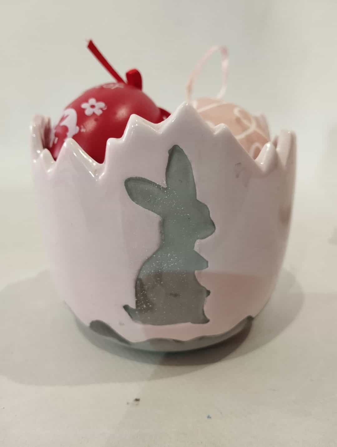 Σετ 2 Πασχαλινά διακοσμητικά σε σχήμα αυγού 9×9,5 / 14×10,5 Υπάρχει φθορά  Κωδικός προϊόντος: #s16630