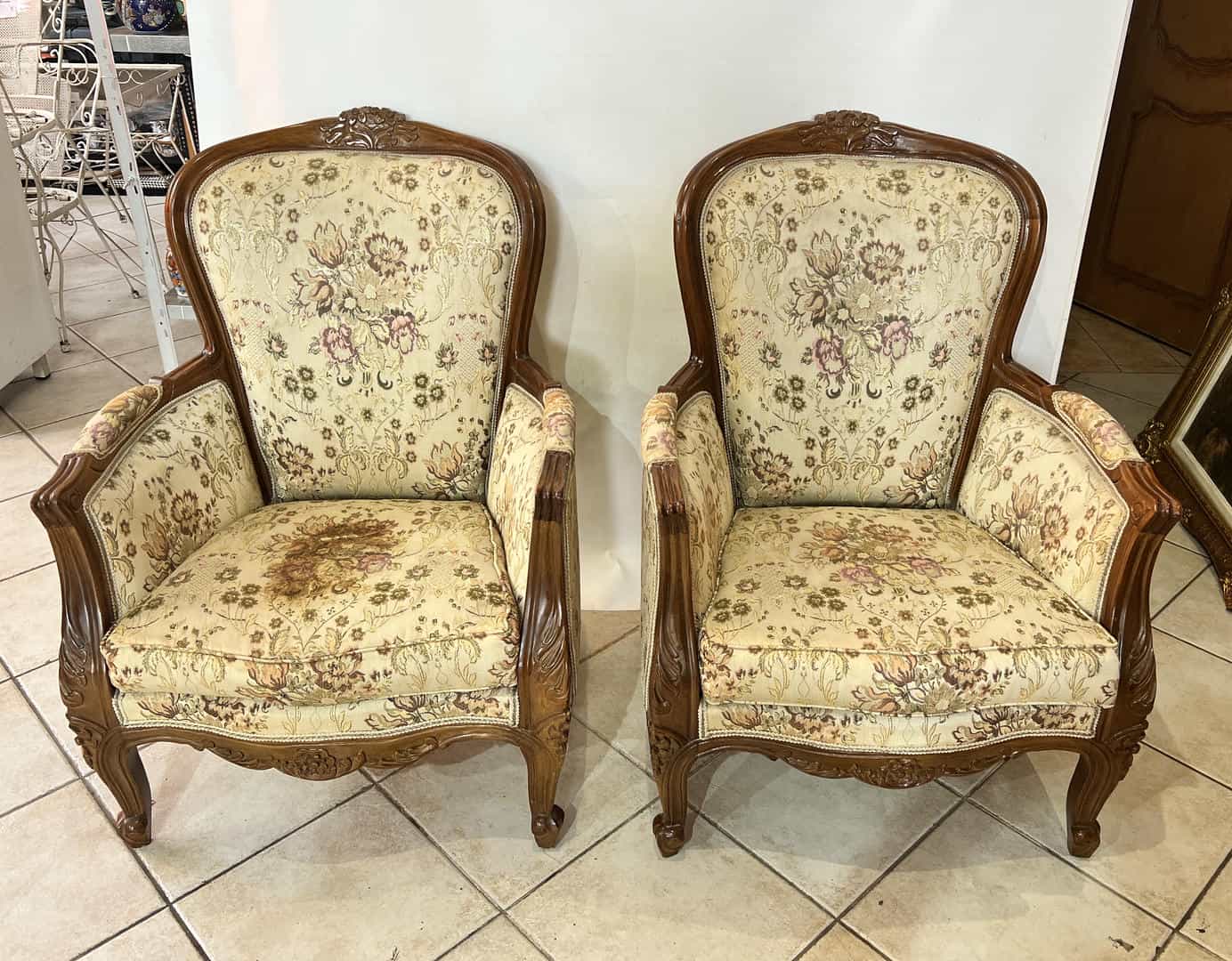 Σετ 2 πολυθρόνες με ξύλινες σκαλιστές λεπτομέρειες 97x70x54 Υπάρχει λεκές στη μια πολυθρόνα Κωδικός προϊόντος: #s16724