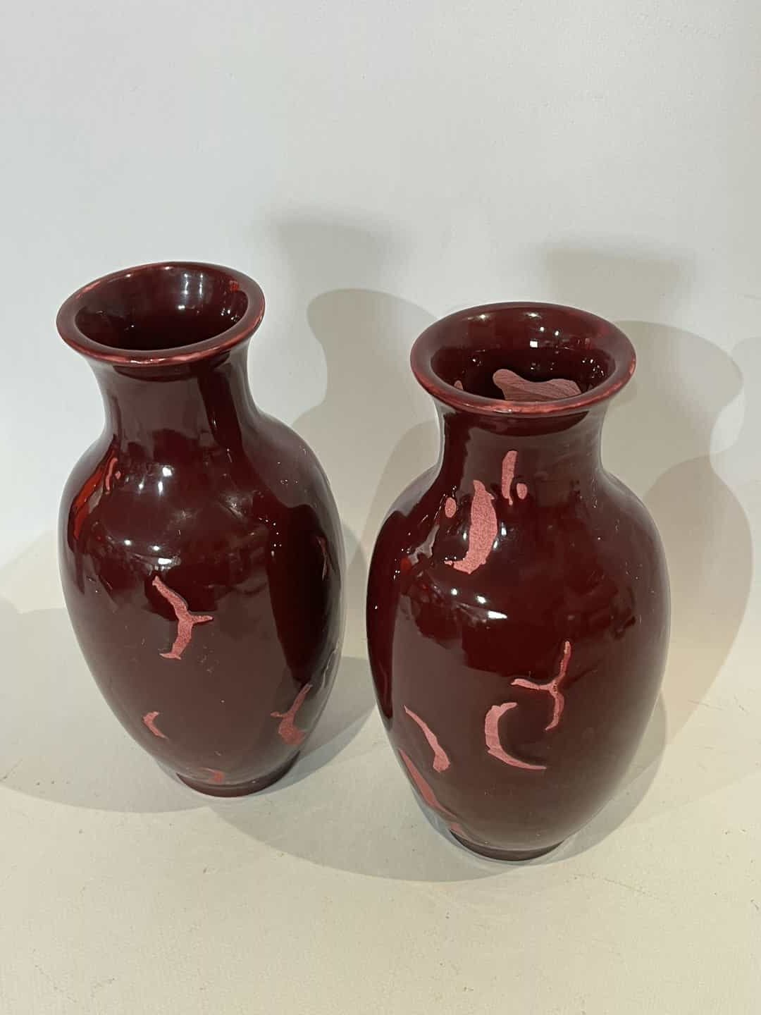 Σετ 2 πορσελάνινα βάζα σε μπορντό απόχρωση 22×9. Με φθορά στο χρώμα τους Κωδικός προϊόντος: #s14606