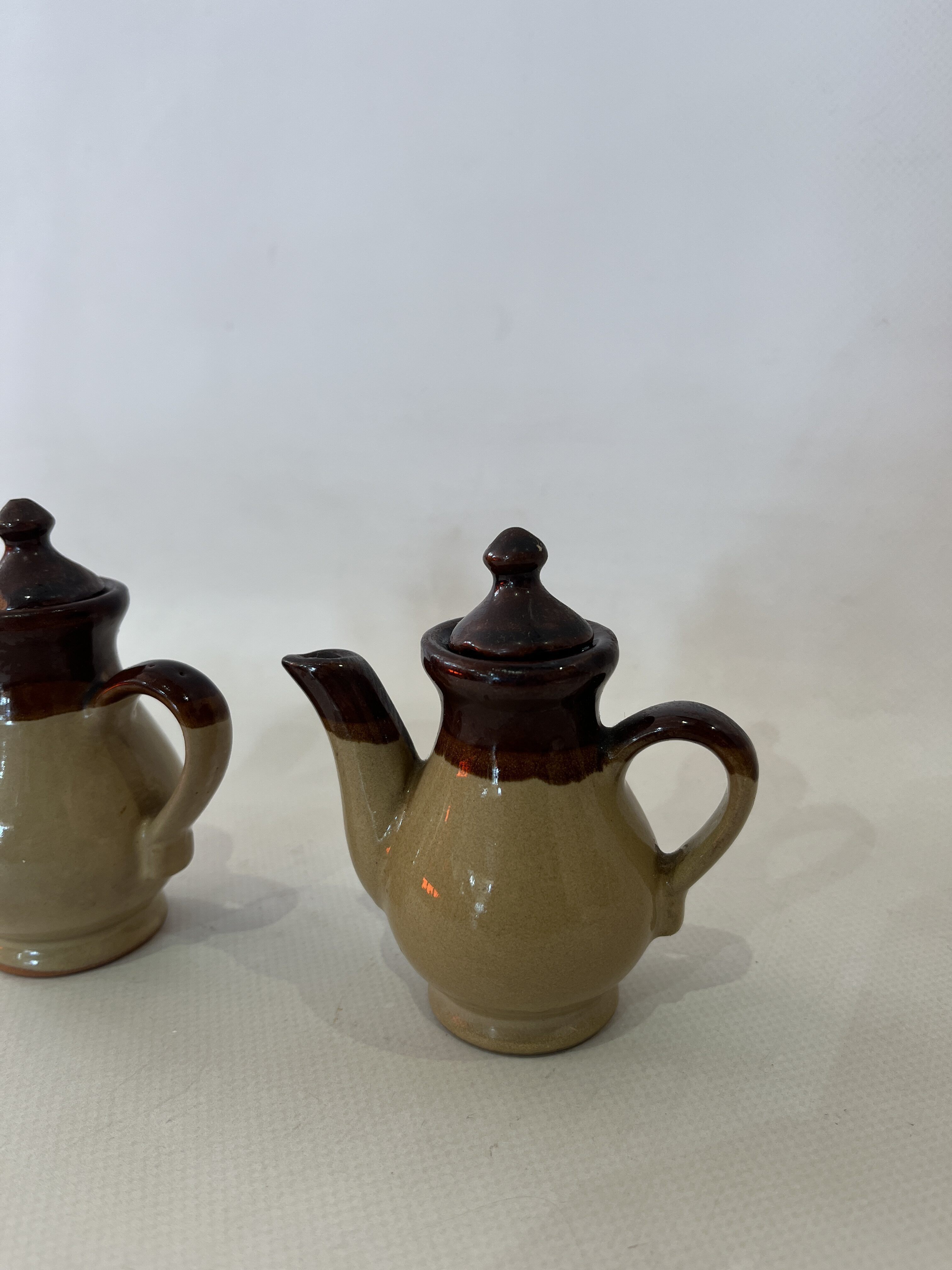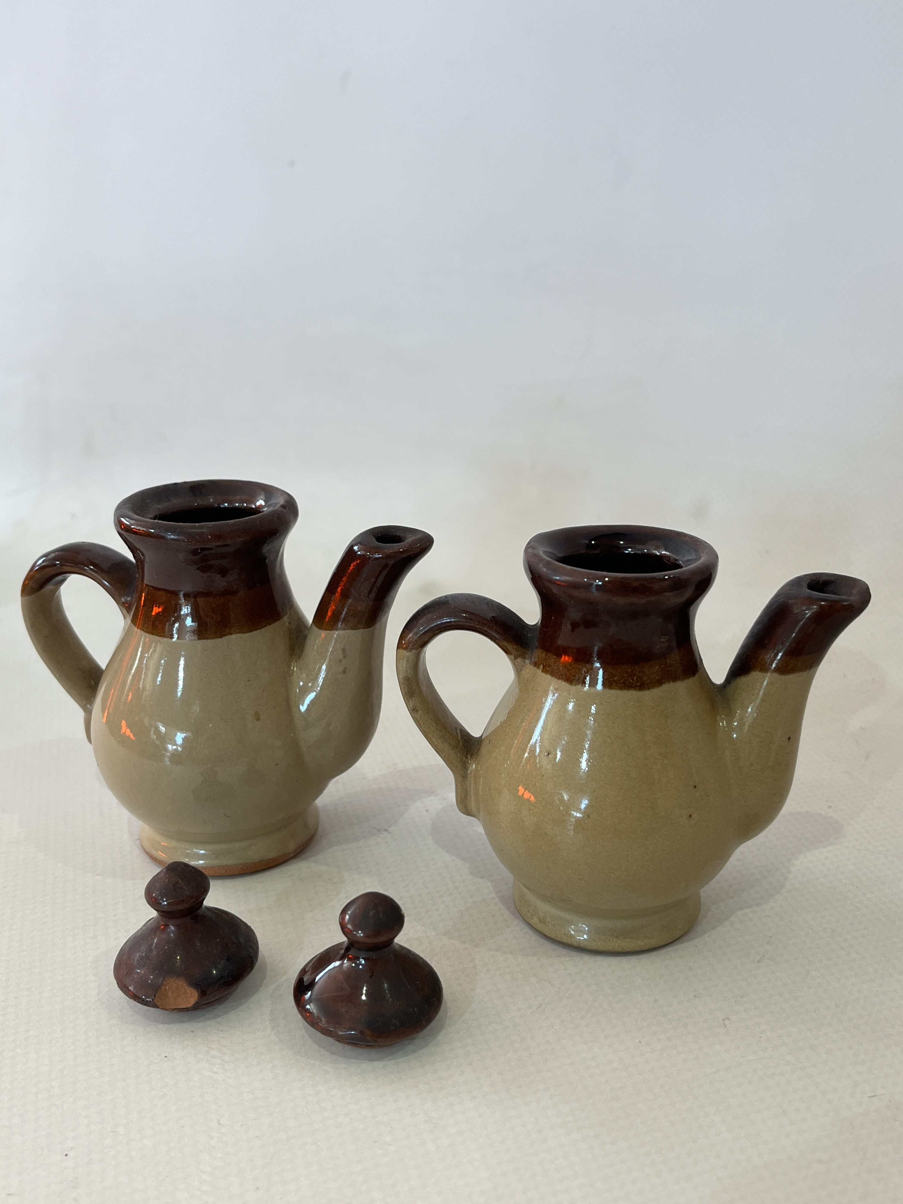 Σετ 2 χειροποίητες πήλινες κανάτες 10×10 . Υπάρχει φθορά στο καπάκι της μίας, όπως φαίνεται στις φωτογραφίες  Κωδικός προϊόντος: #s8298
