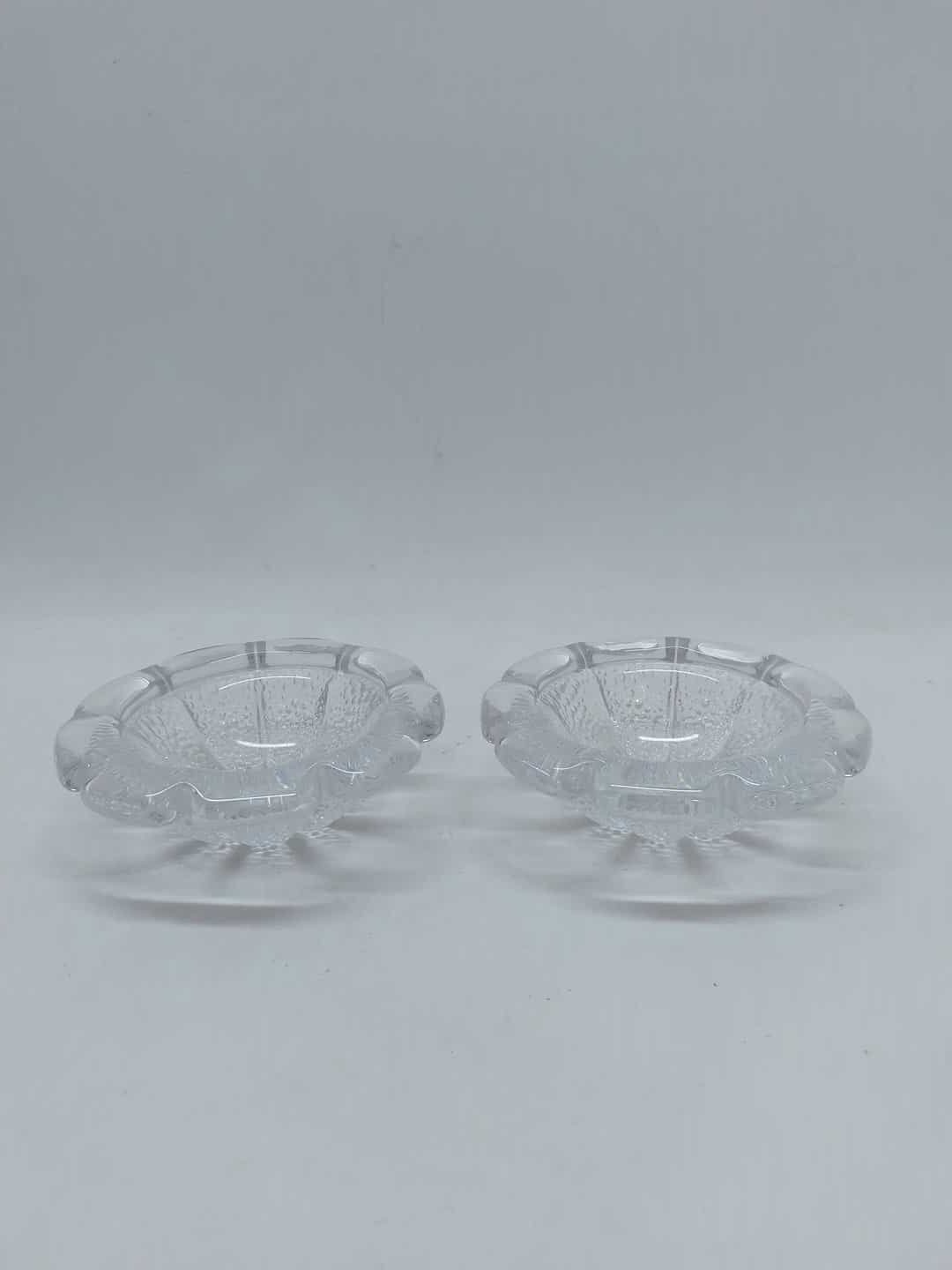 Σετ 2 vintage κρυστάλλινα μπολ γλυκού σε σχήμα λουλουδιού με ανάγλυφα σχέδια 4x13cm