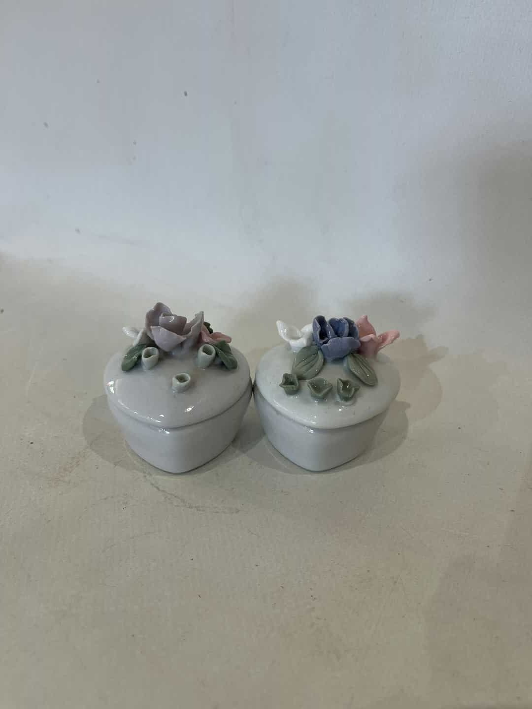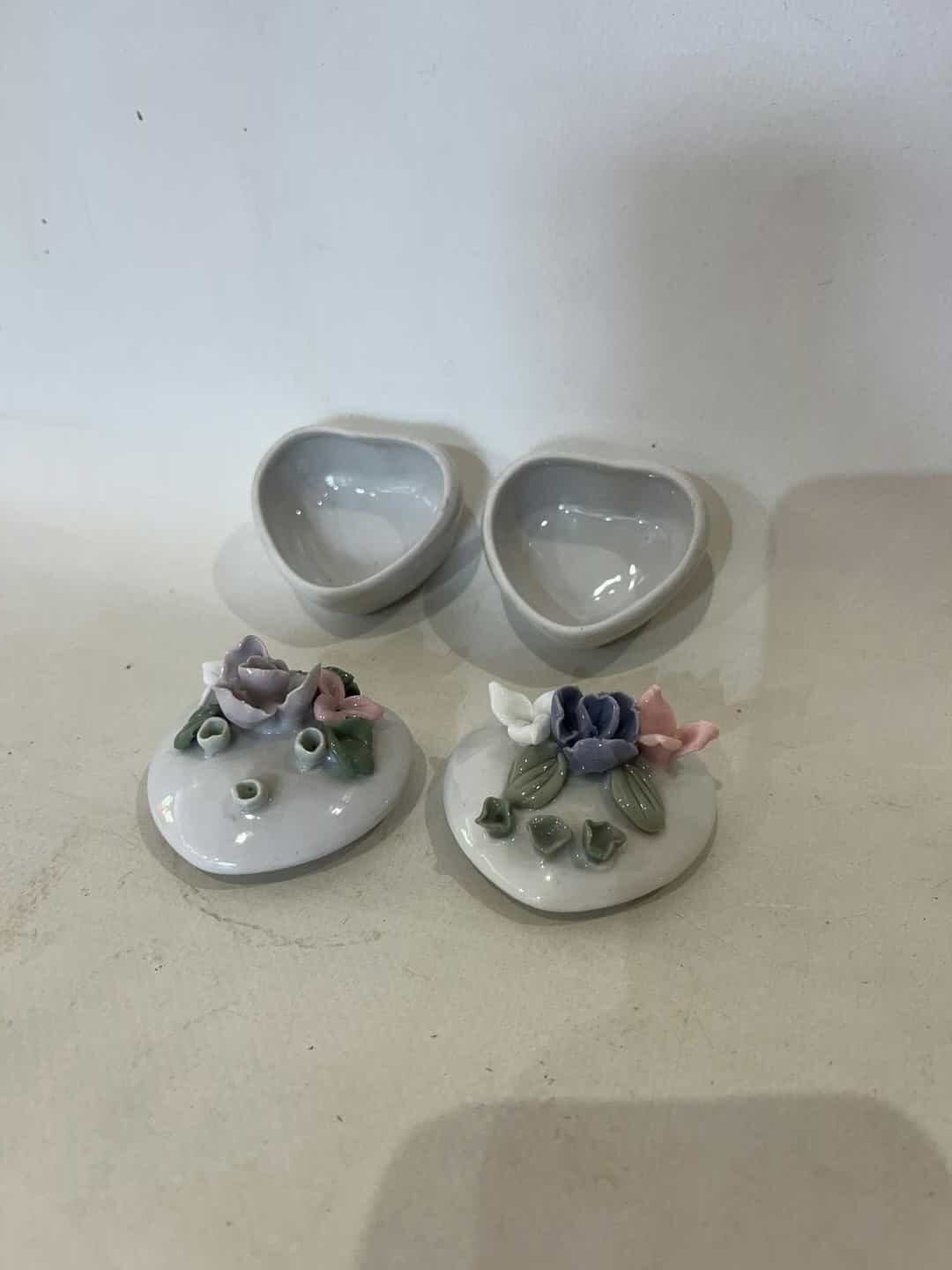 Σετ 2 vintage πορσελάνινες κοσμηματοθήκες σε σχήμα καρδιάς με τρισδιάστατα λουλούδια 5x5x4 Κωδικός προϊόντος: #s16798