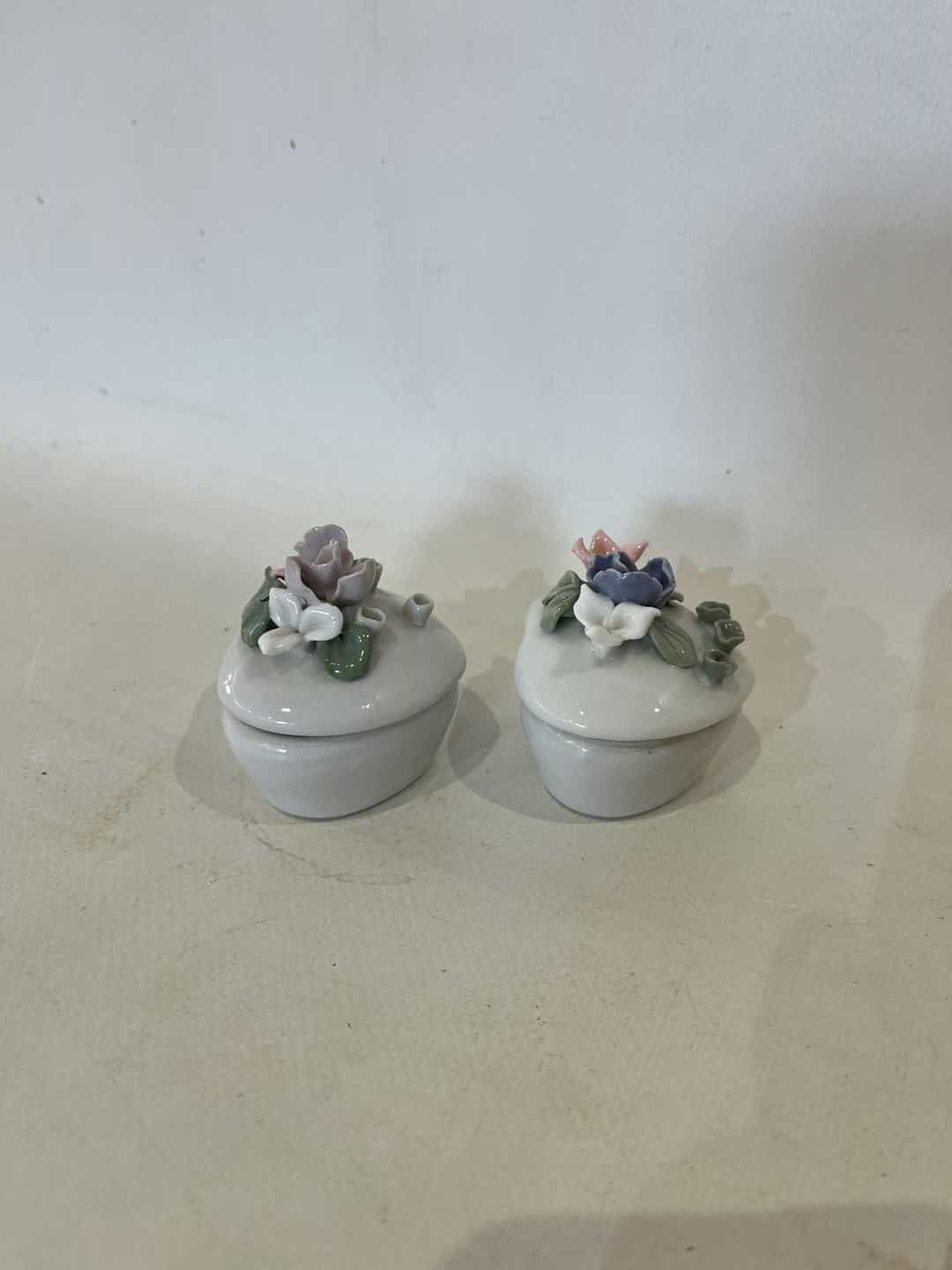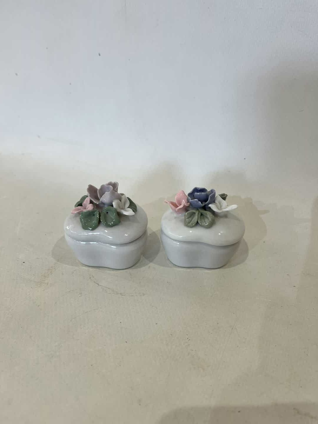 Σετ 2 vintage πορσελάνινες κοσμηματοθήκες σε σχήμα καρδιάς με τρισδιάστατα λουλούδια 5x5x4