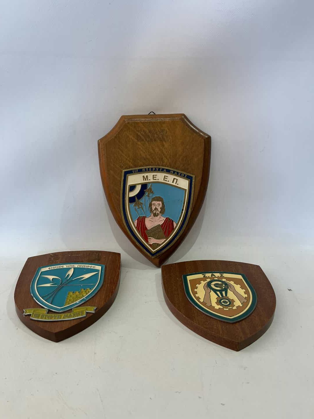 Σετ 3 αντίκες στρατιωτικά ξύλινα εμβλήματα 16×13 & 22×16  Κωδικός προϊόντος: #s14765