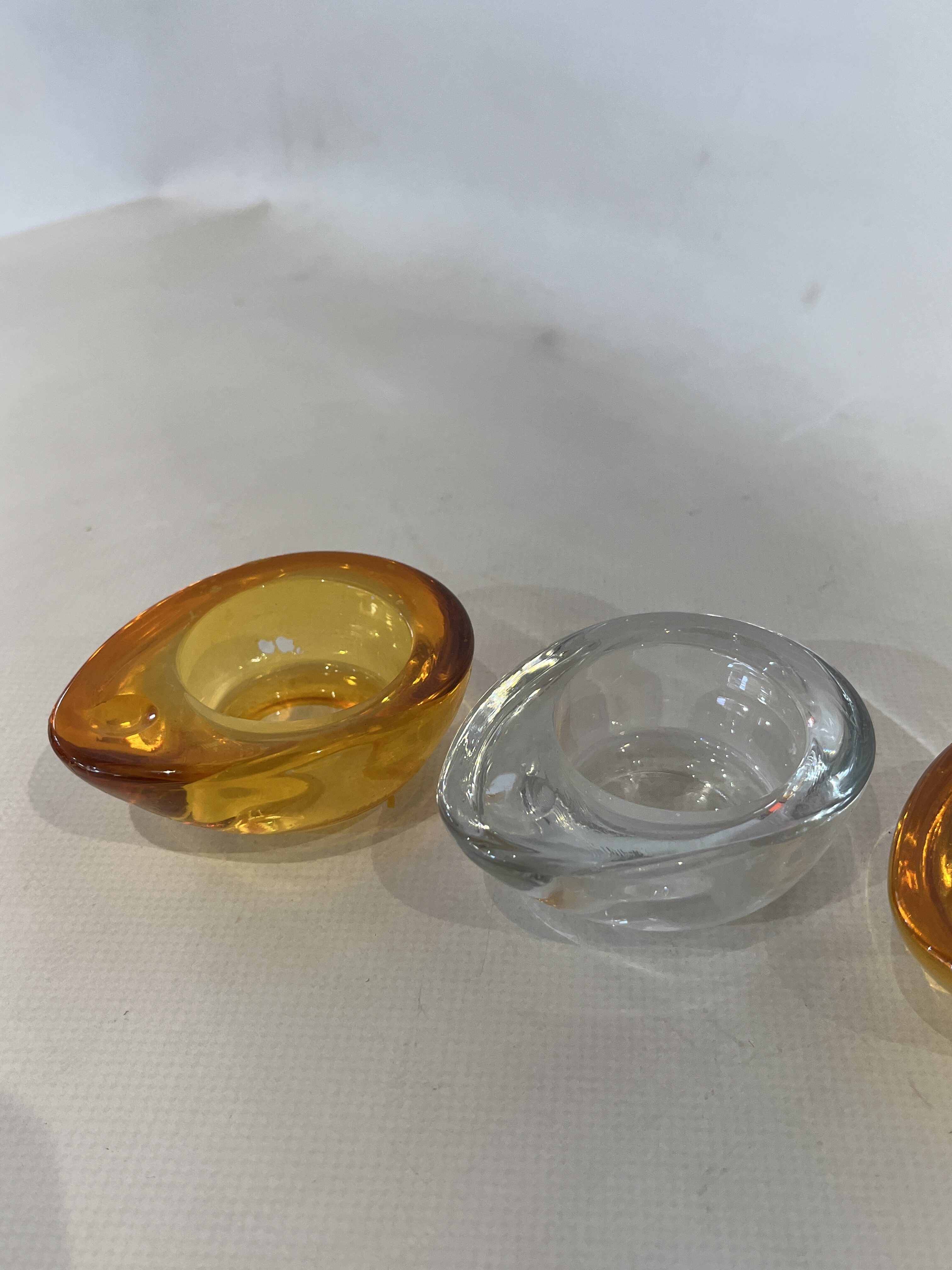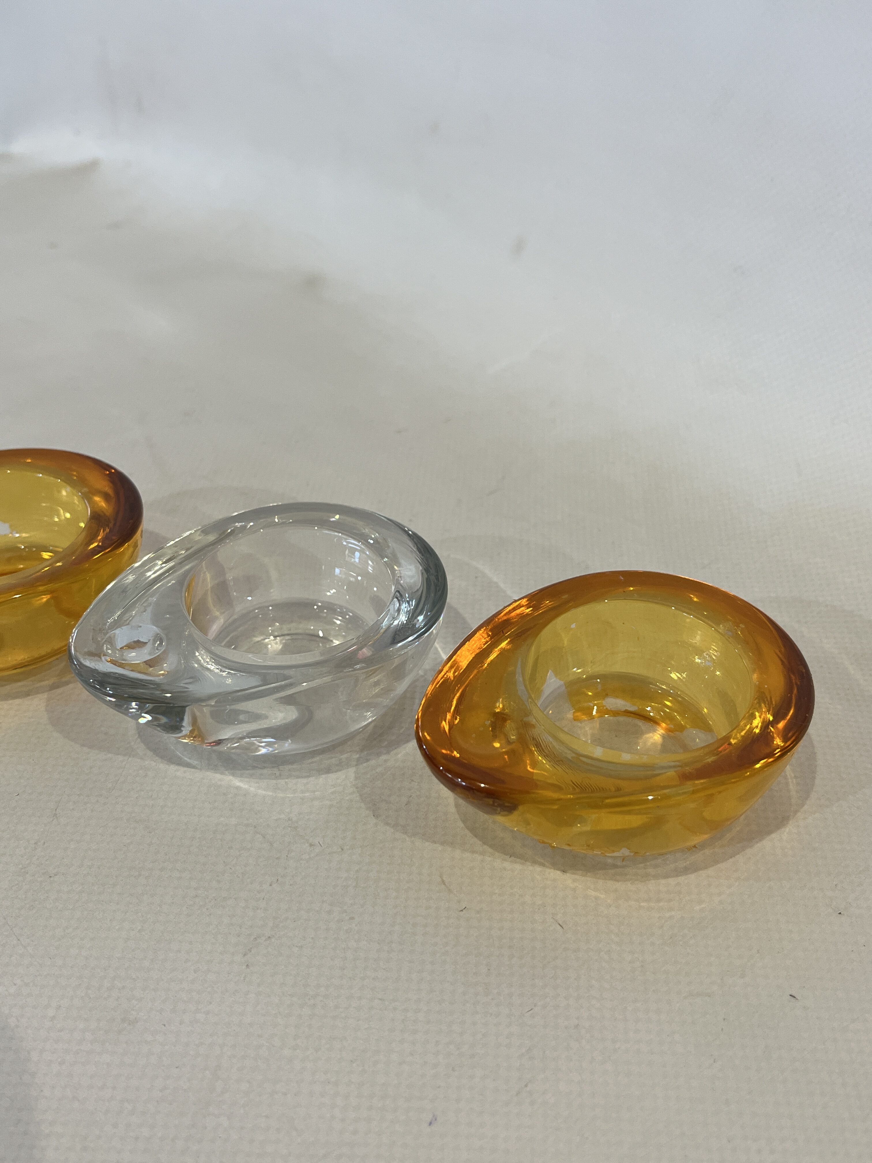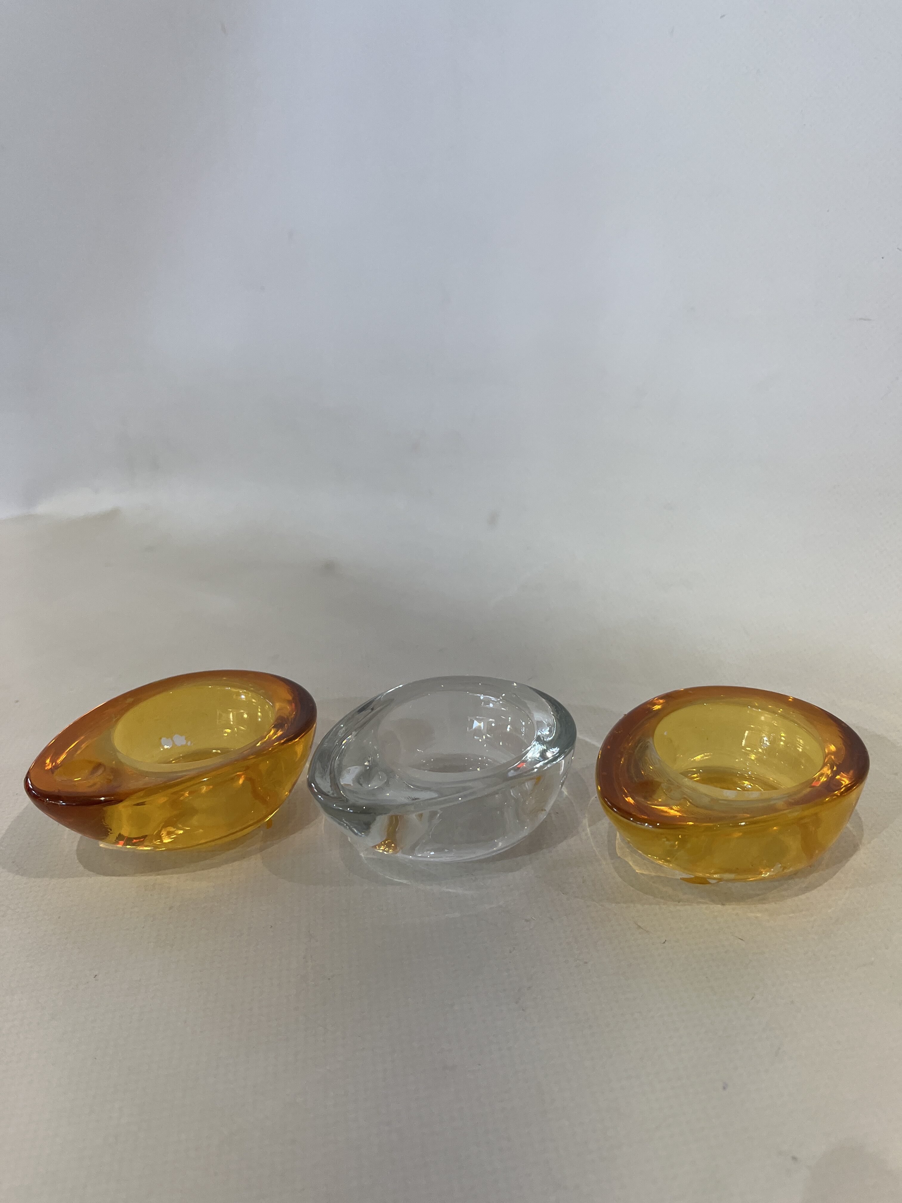 Σετ 3 γυάλινα κηροπήγια για ρεσώ 3,5×8,5×6 . Τα πορτοκαλί έχουν φθορά στο χρώμα τους Κωδικός προϊόντος: #s8326