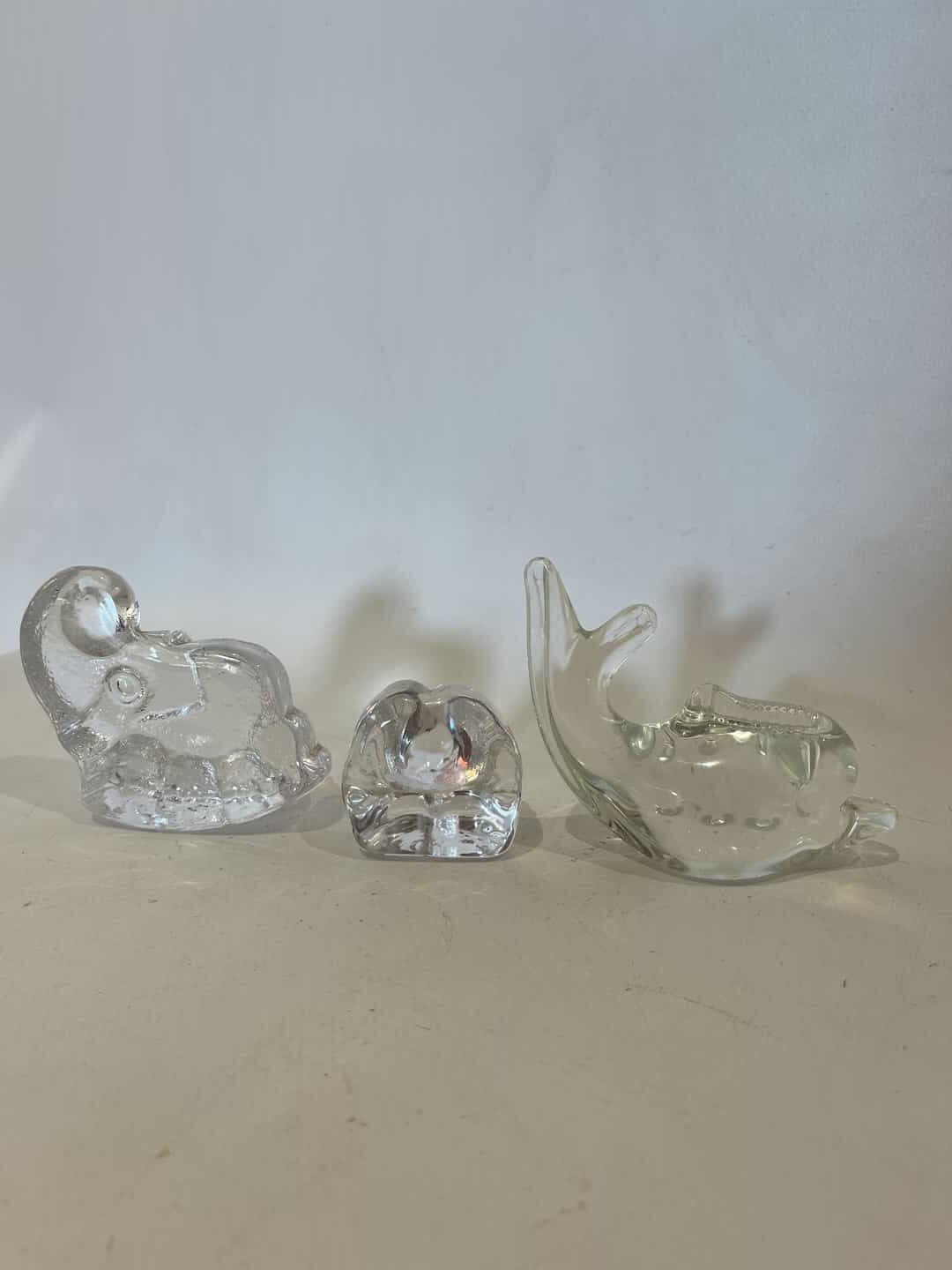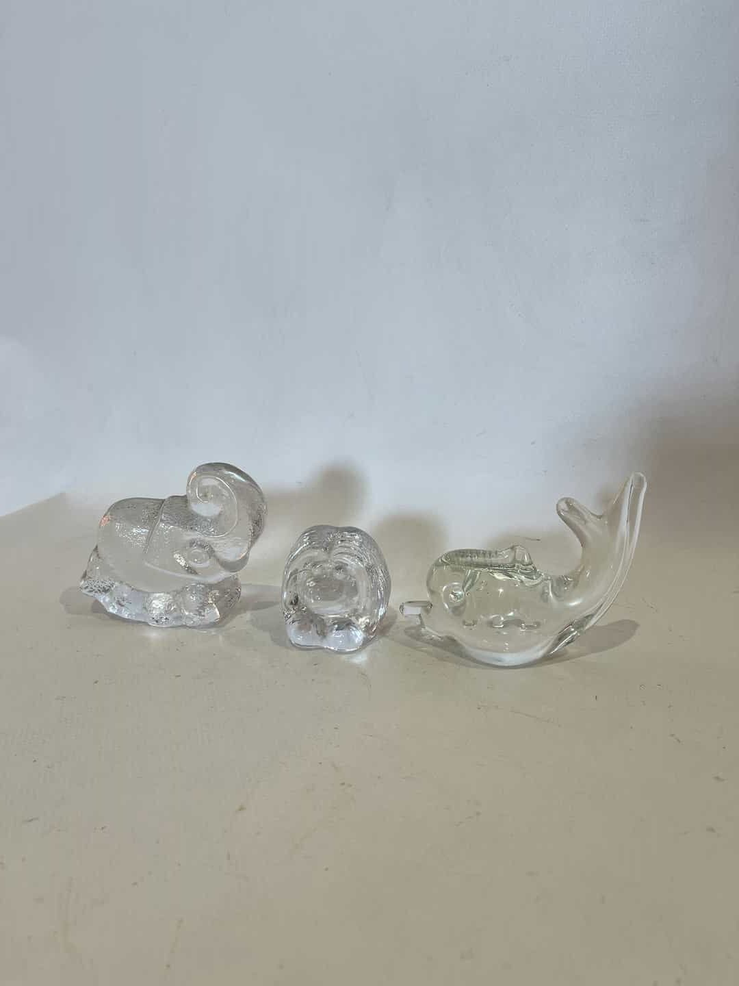 Σετ 3 γυάλινες φιγούρες . Διαστάσεις ελέφαντα: 7x7x2 , αρκουδάκι: 4x4x3,5 , δελφίνι: 7x8x3