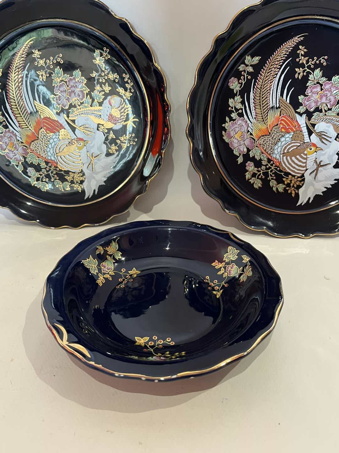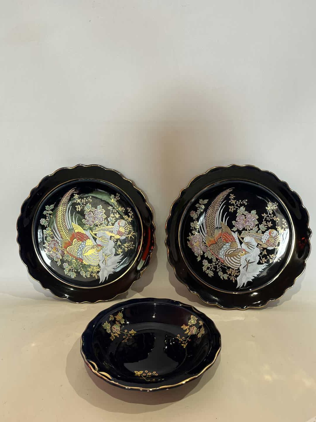 Σετ 3 διακοσμητικά κινέζικα πιάτα με σχέδια και χρυσές λεπτομέρειες