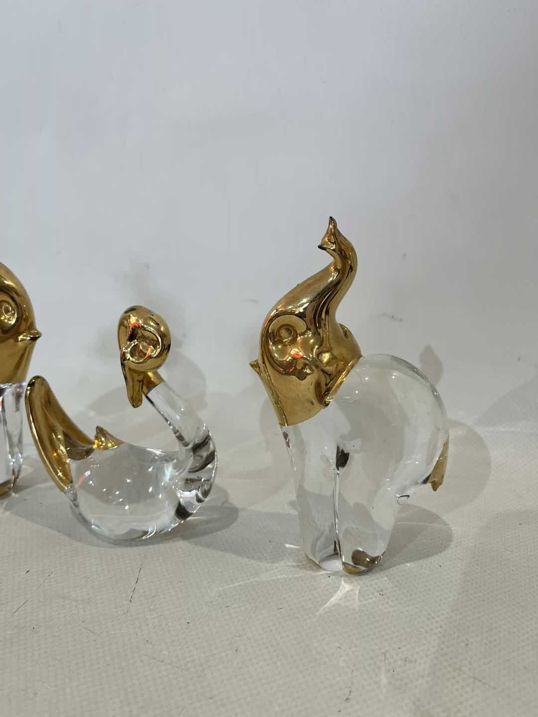 Σετ 3 διακοσμητικές φιγούρες από γυαλί , Μουράνο . Διαστάσεις ελέφαντα: 13x7x4 , κύκνου: 10x8x4 . Έχει φθορά στο χρώμα , έχει ξεθωριάσει και ένα σπάσιμο στον ένα ελέφαντα όπως φαίνεται στις φωτογραφίες Κωδικός προϊόντος: #s9406