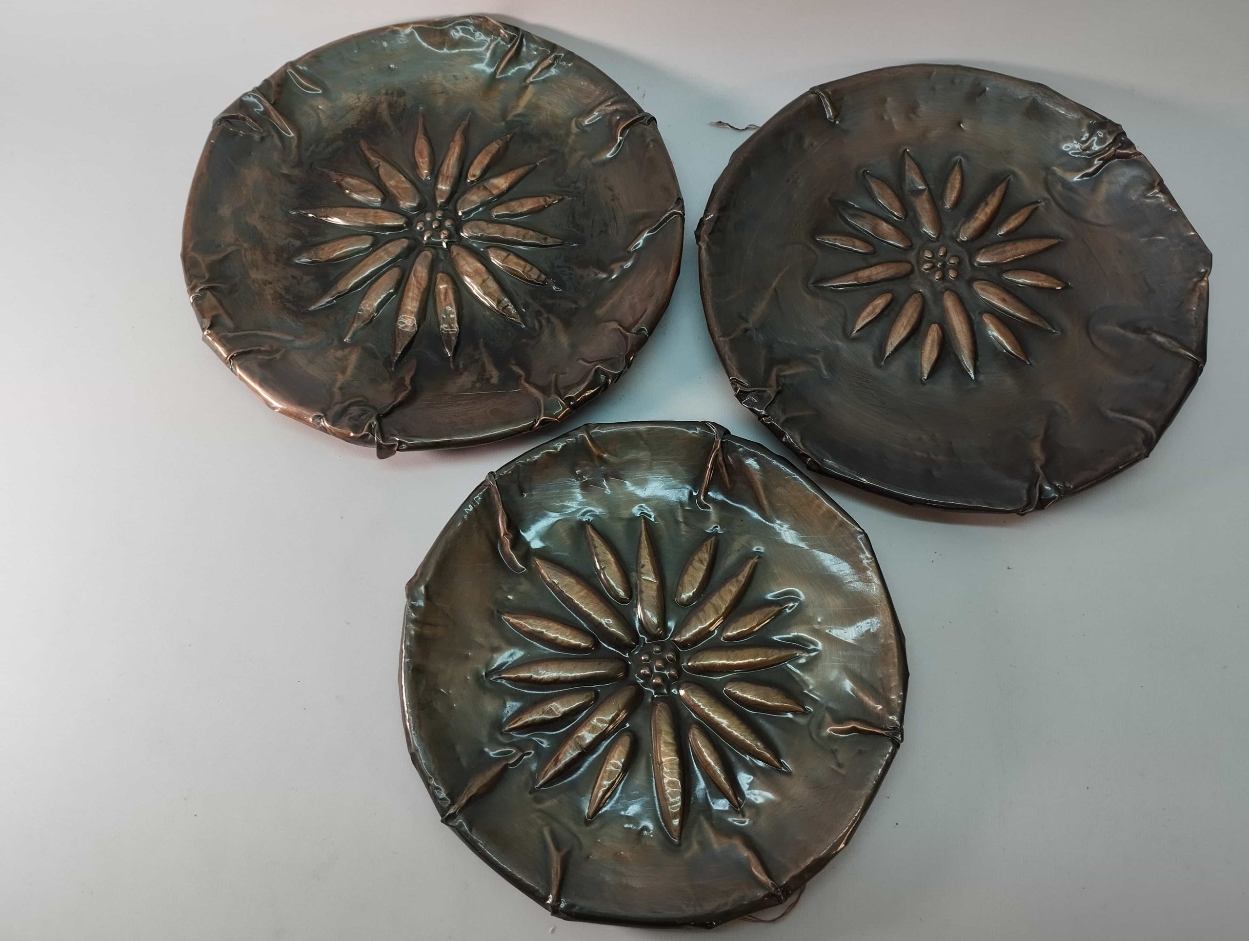 Σετ 3 πήλινα διακοσμητικά πιάτα τοίχου με χάλκινη επένδυση 21cm,18cm Κωδικός προϊόντος:#s3184