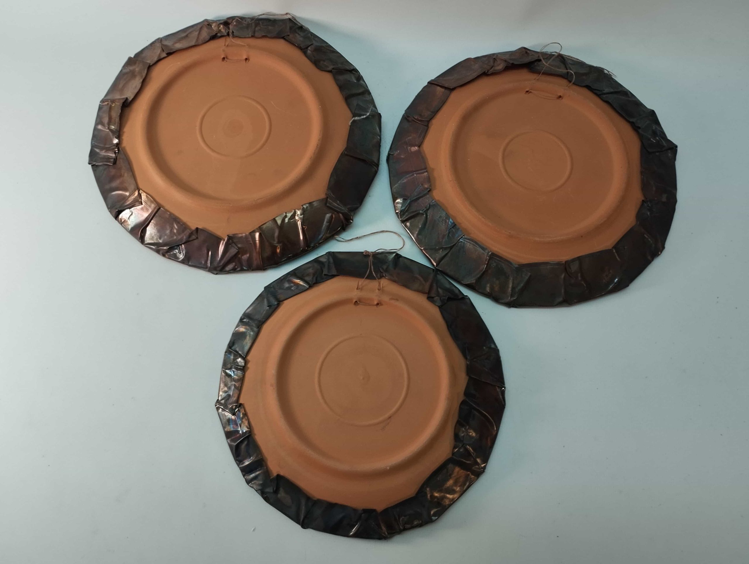 Σετ 3 πήλινα διακοσμητικά πιάτα τοίχου με χάλκινη επένδυση 21cm,18cm