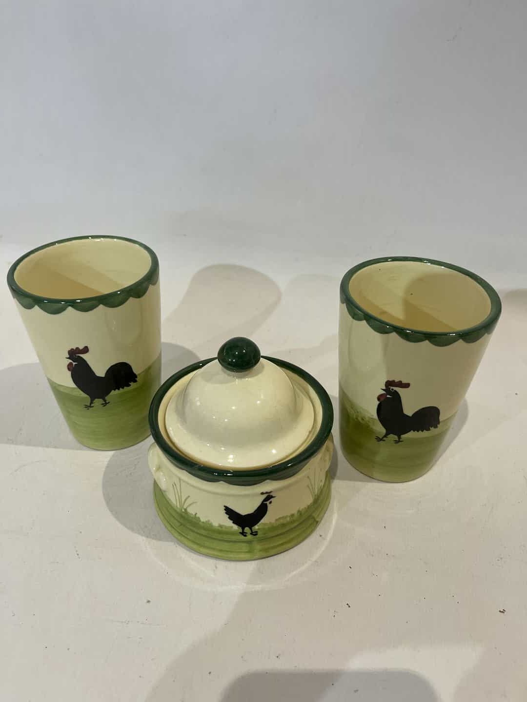 Σετ 3 vintage κεραμικά σκέυη τσαγιου Zeller Keramik , ζαχαριέρα και 2 φλιτζάνια . Διαστάσεις ζαχαριέρας: 10×9 , φλιτζάνι: 10×7 Κωδικός προϊόντος: #s15183