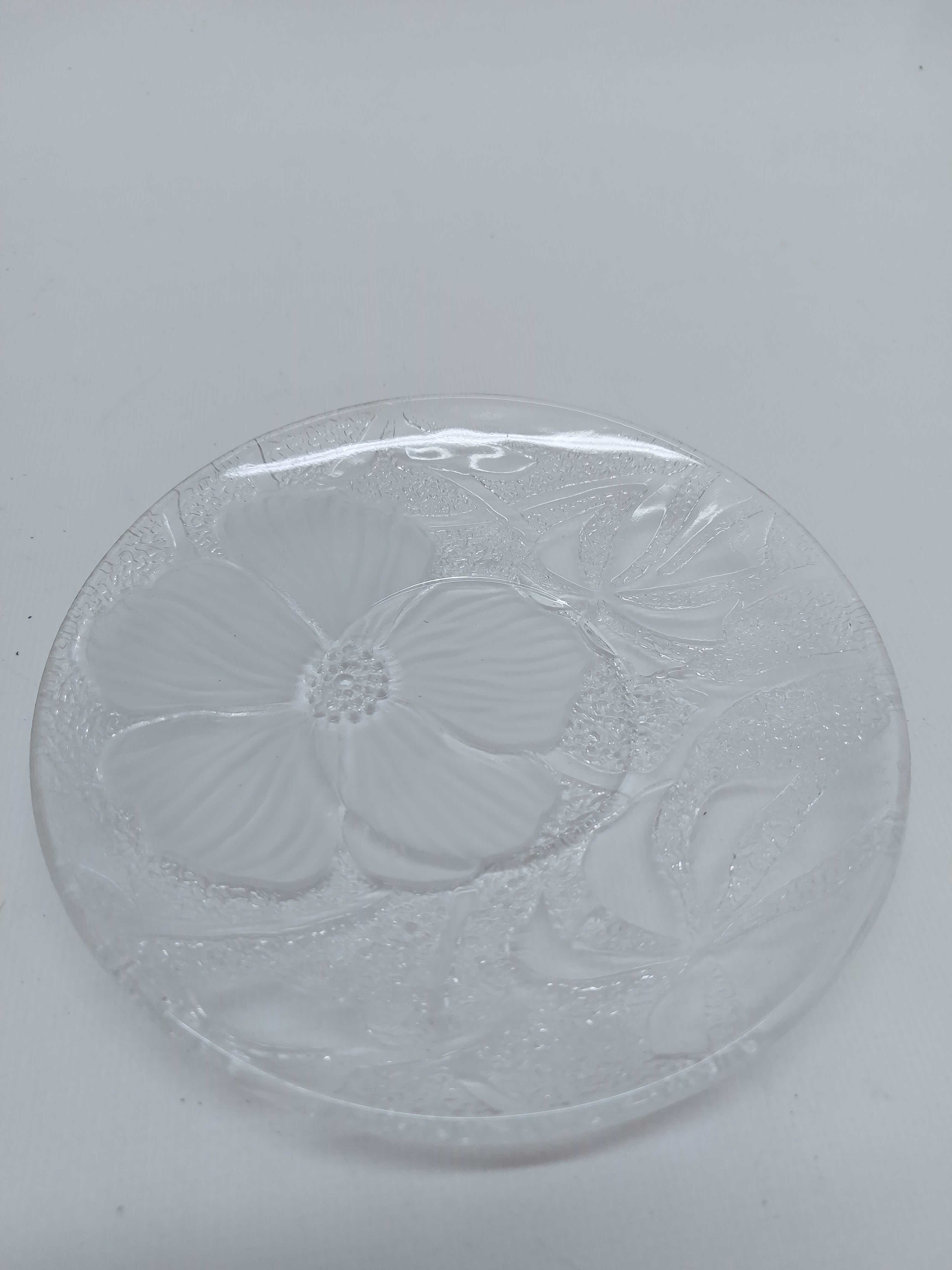 Σετ 4 γυάλινα πιατάκια του γλυκού με ανάγλυφα λουλούδια στην πίσω πλευρά 14cm