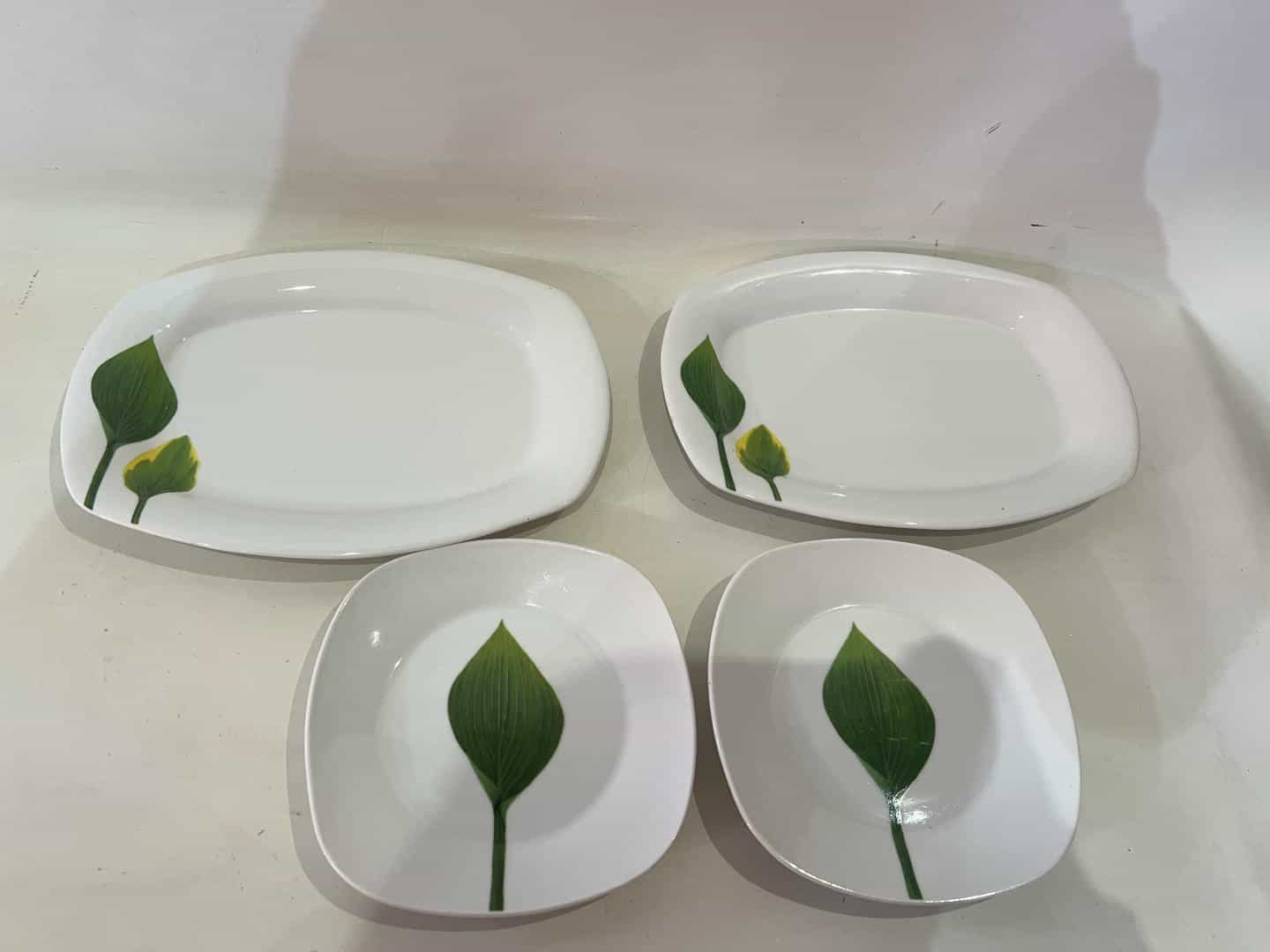 Σετ 4 πορσελάνινα πιάτα. Υπάρχουν φθορές οβαλ: 30×21,5 / πιατ: 18,5εκ. Κωδικός προϊόντος: #s15385