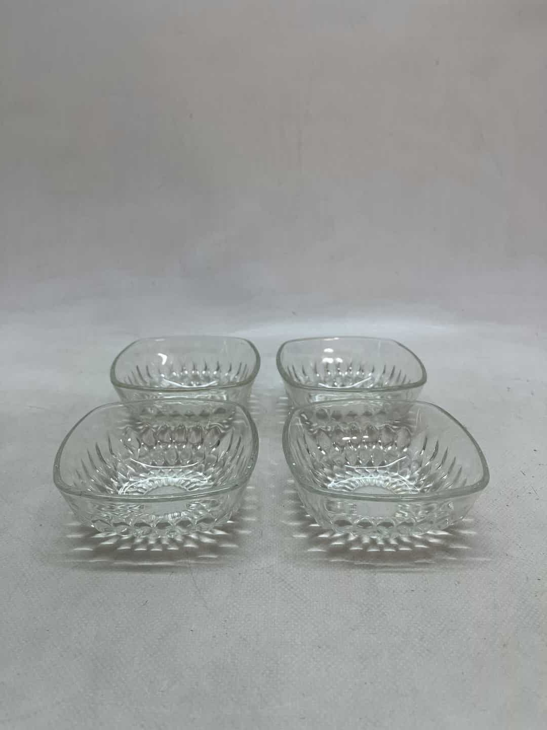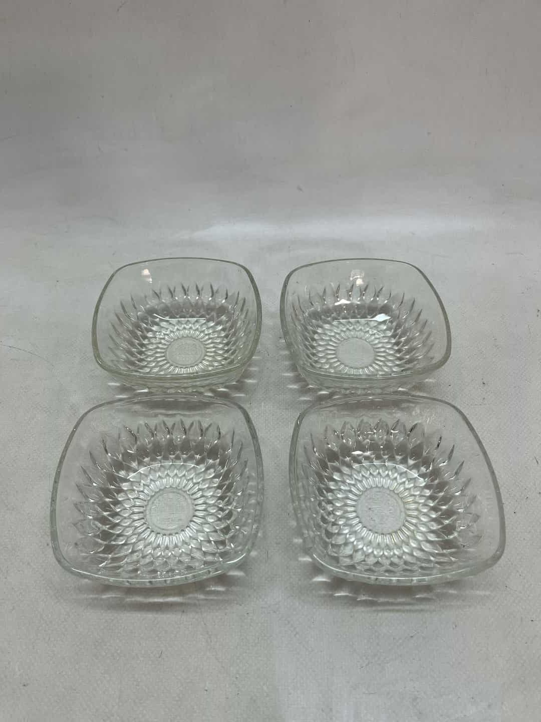 Σετ 4 σκαλιστά γυάλινα μπολ Duralex France 4x10x10 . Τα 2 είναι πιο θαμπά , όπως φαίνεται στις φωτογραφίες  Κωδικός προϊόντος: #s8544