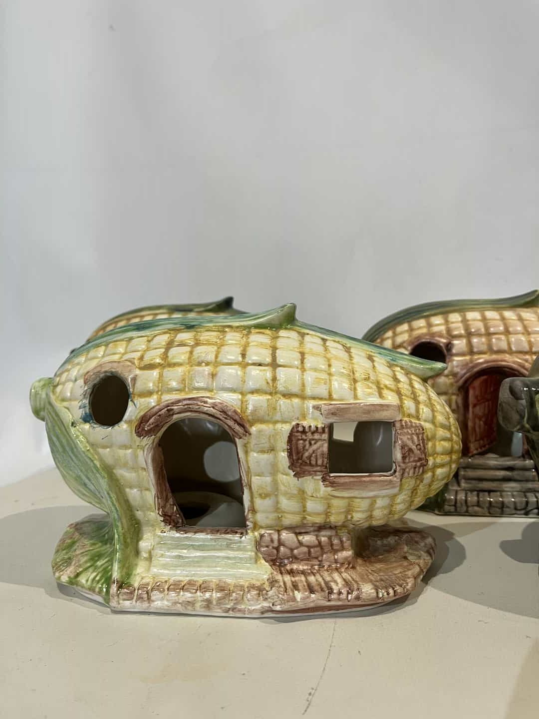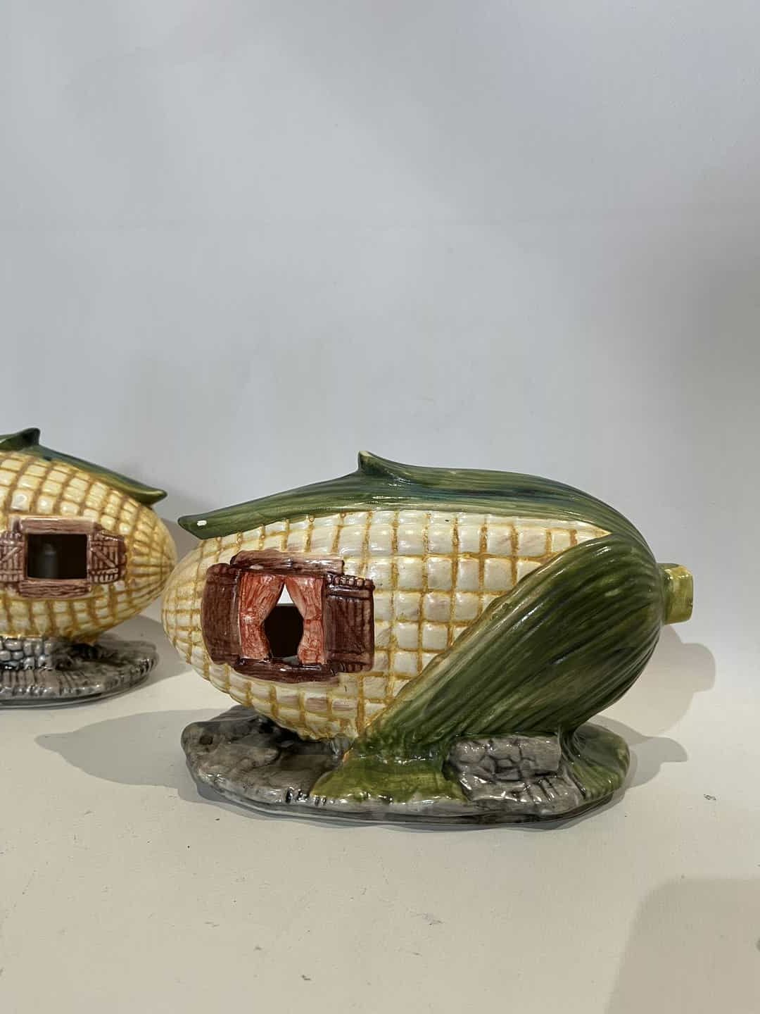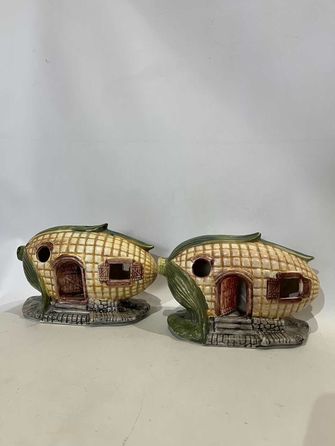 Σετ 4 χειροποίητα κεραμικά διακοσμητικά φαναράκια σε σχήμα καλαμποκιού 13x21x12