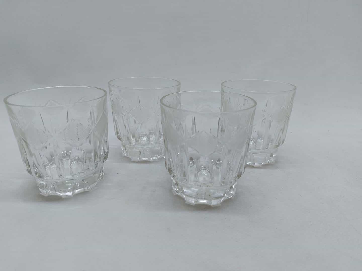 Σετ 4 vintage γυάλινα ποτήρια ουίσκι σκαλιστά 8,5x8cm