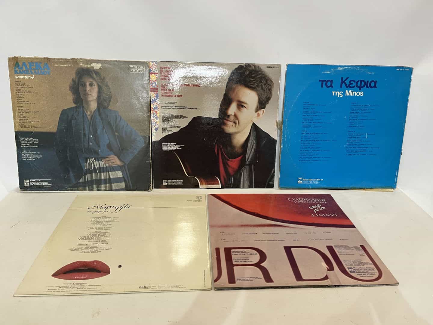 Σετ 6 Ελληνικοί δίσκοι βινυλίου . Στον “Τα κέφια της Minos” περιλαμβάνονται 2 δίσκοι Κωδικός προϊόντος: #s14874