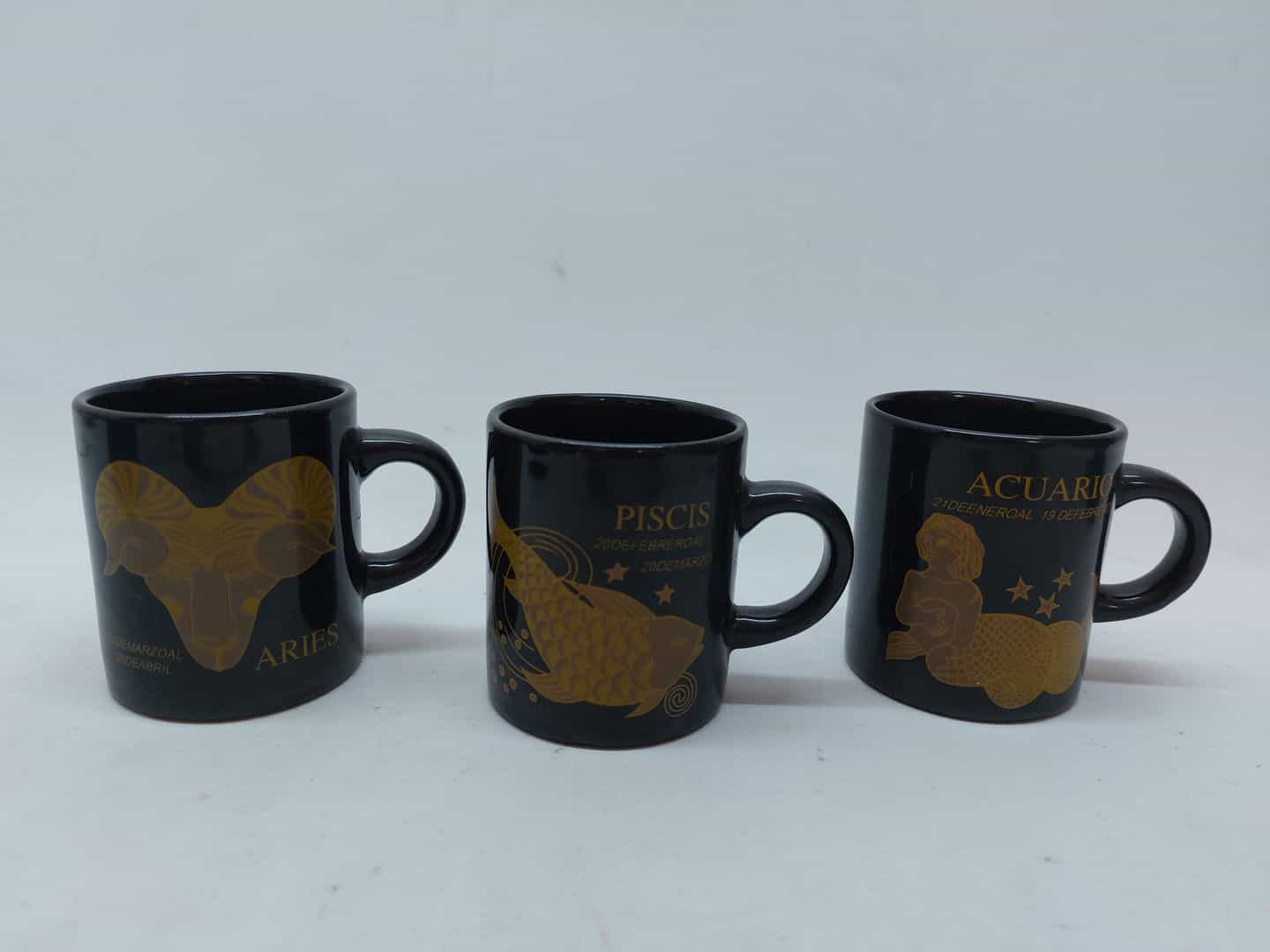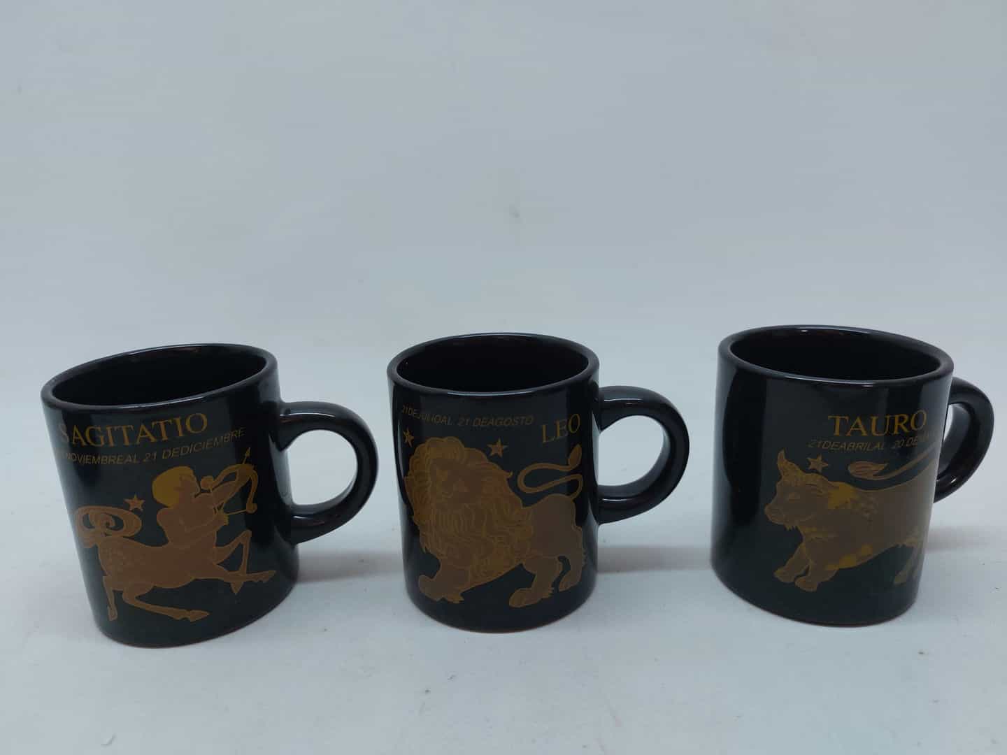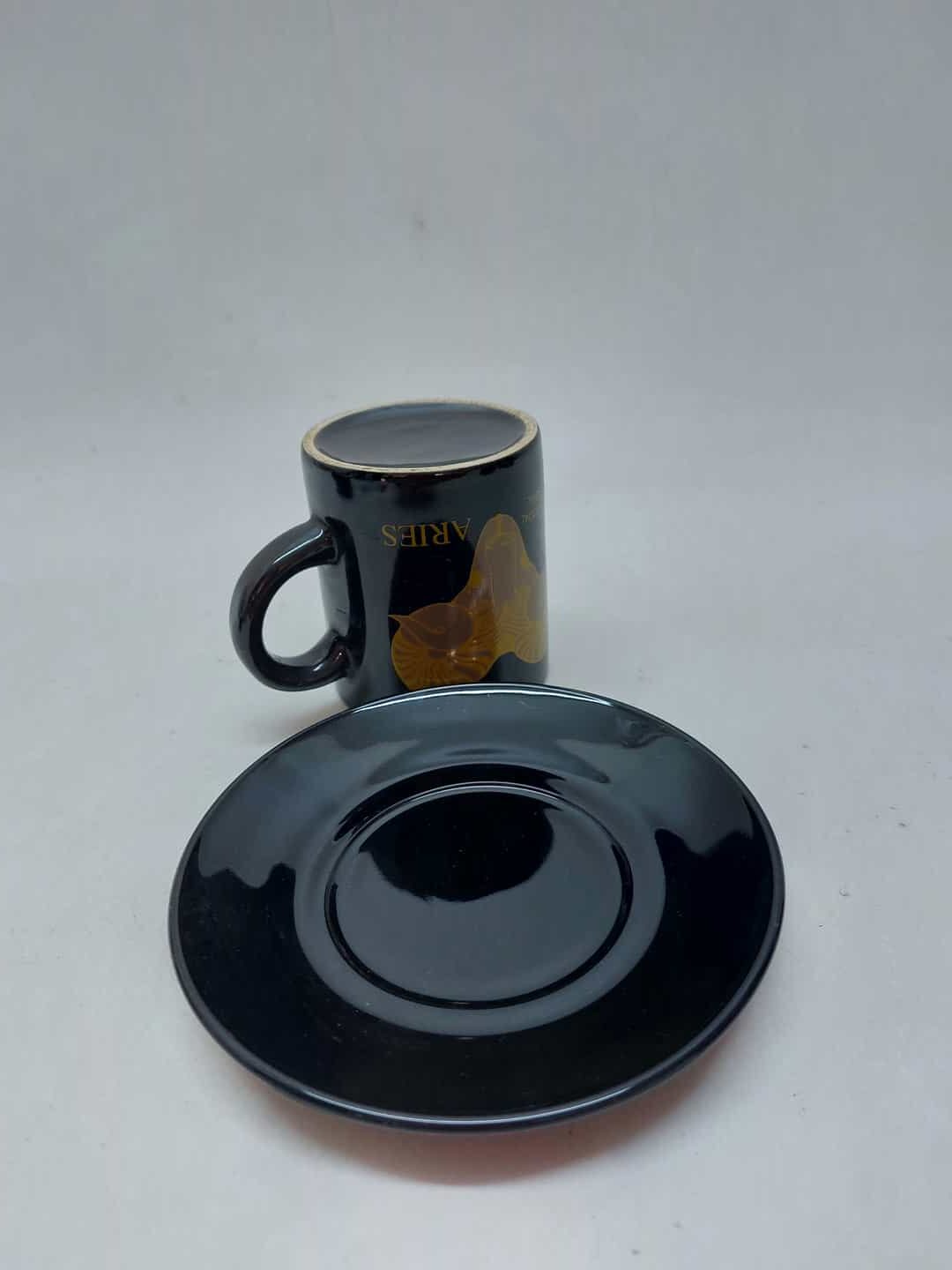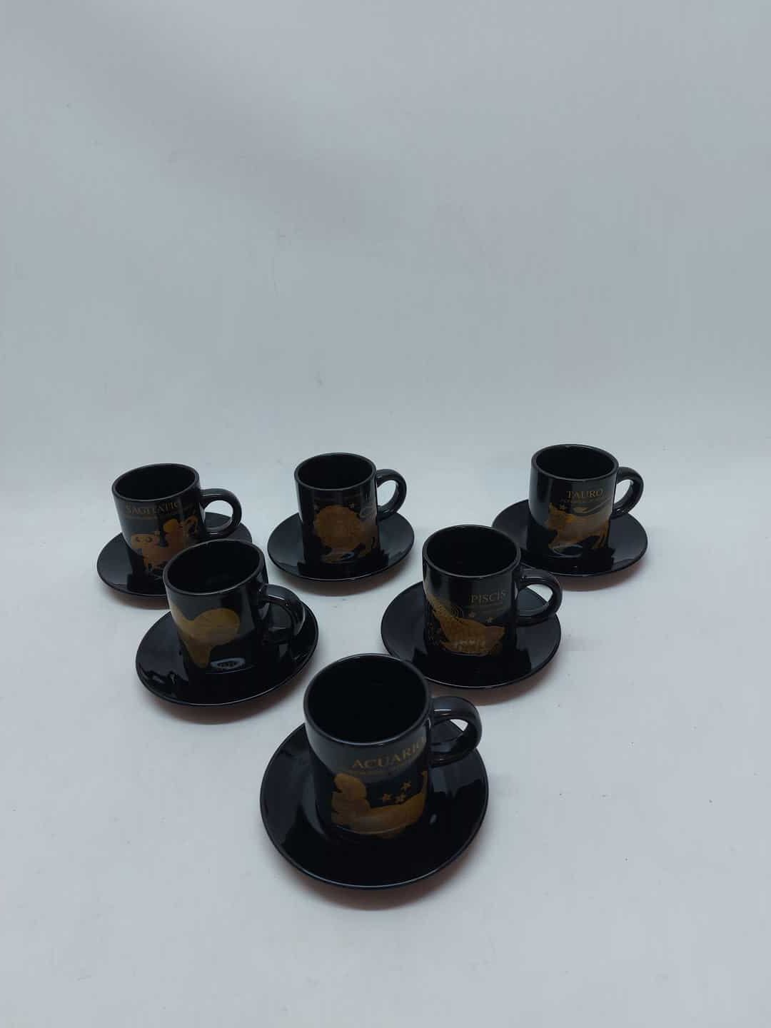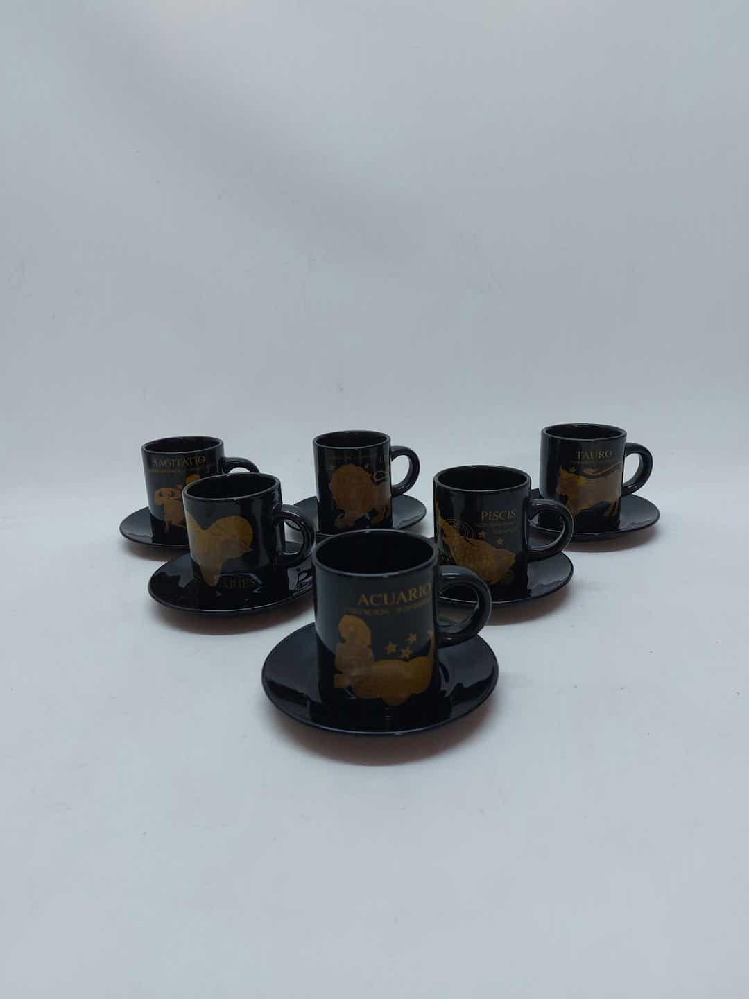 Σετ 6 μαύρα φλιτζανάκια του καφέ/πιατάκια με απεικόνιση ζωδίων Arcoroc France. Διαστάσεις: φλιτζανάκια 7x8cm και πιατάκια 11cm Κωδικός προϊόντος:#s4985