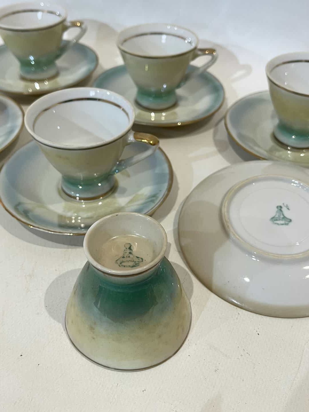 Σετ 6 πορσελάνινα φλιτζανάκια του καφέ με πιατάκια Mid Century σε μπλε/πράσινο χρώμα