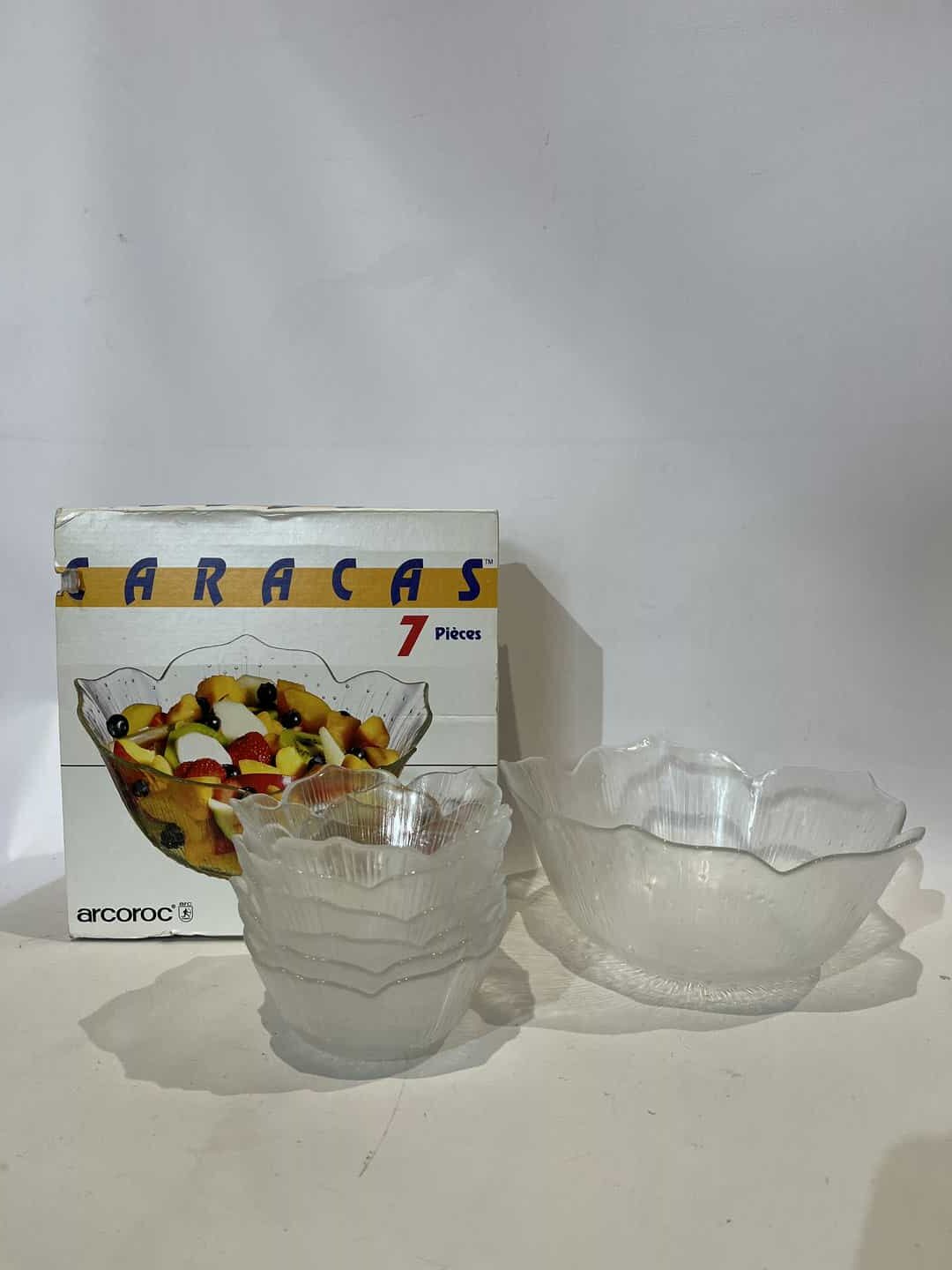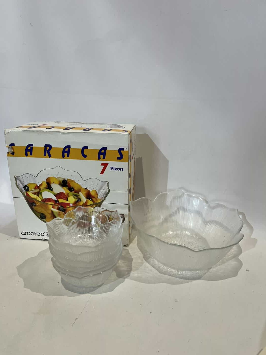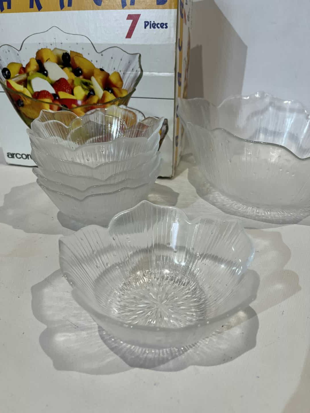 Σετ 7 γυάλινα μπολ σερβιρίσματος Arcoroc Caraca . Διαστάσεις μεγάλου: 9×21 , μικρού: 5×11
