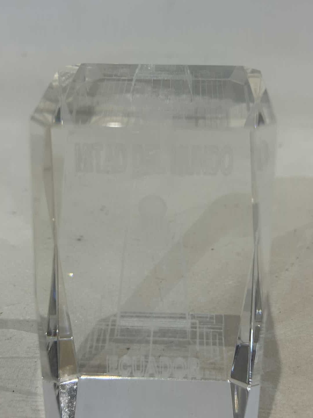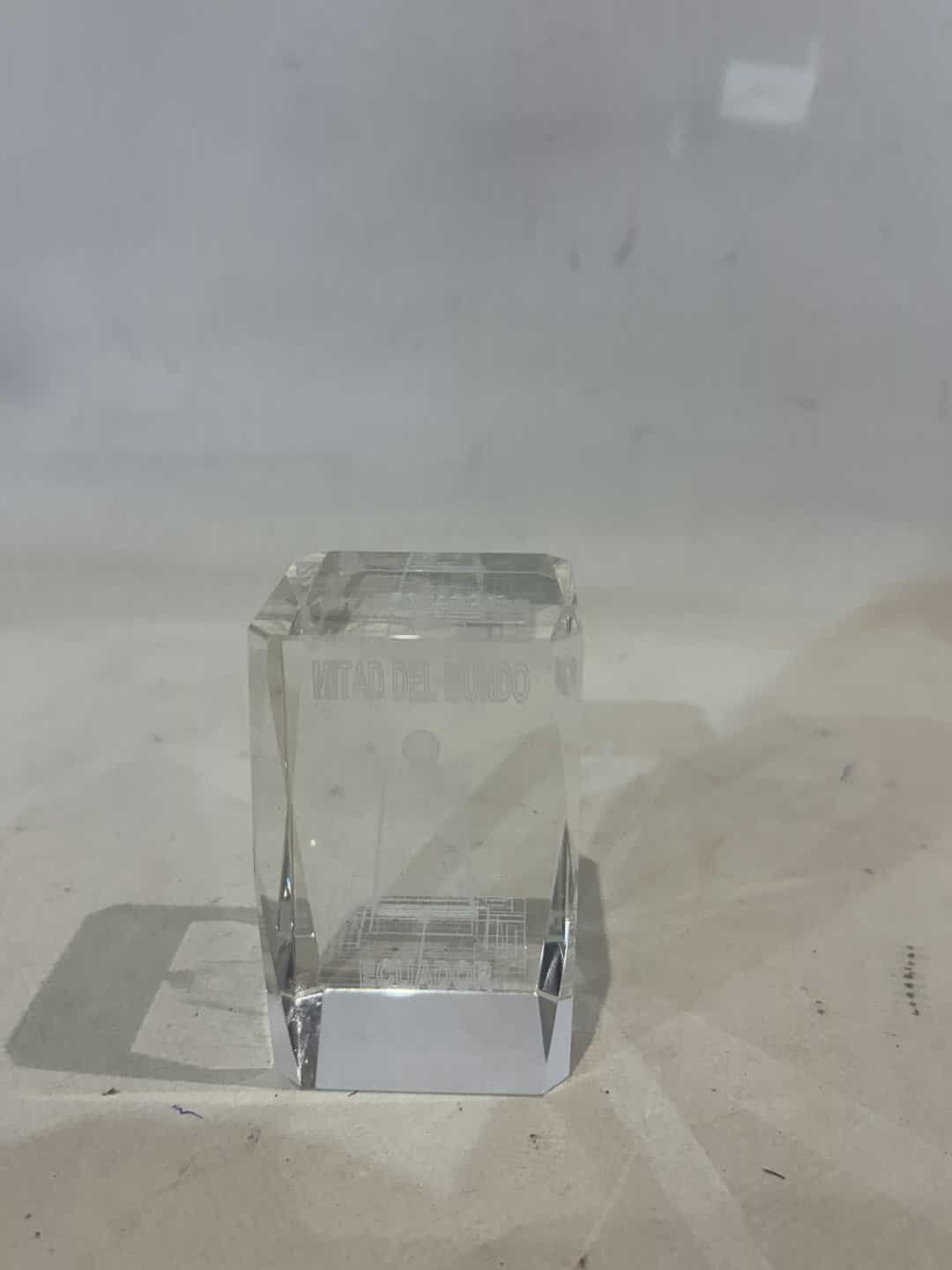 Συλλεκτικός γυάλινος κύβος 3D MITAD DEL MYNDO – ECYADOR , μαζί με κόκκινη θήκη 8×5