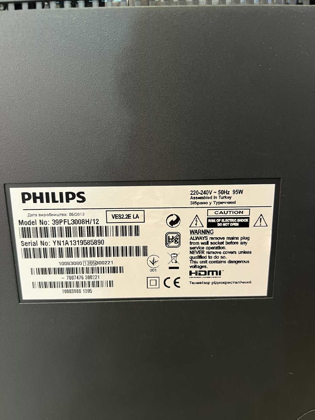 Τηλεόραση PHILIPS 39PFL3008H/12 220-240V/50Hz 58x89x21,5 Λειτουργεί, θέλει τηλεχειριστήριο  Κωδικός προϊόντος: #s15633