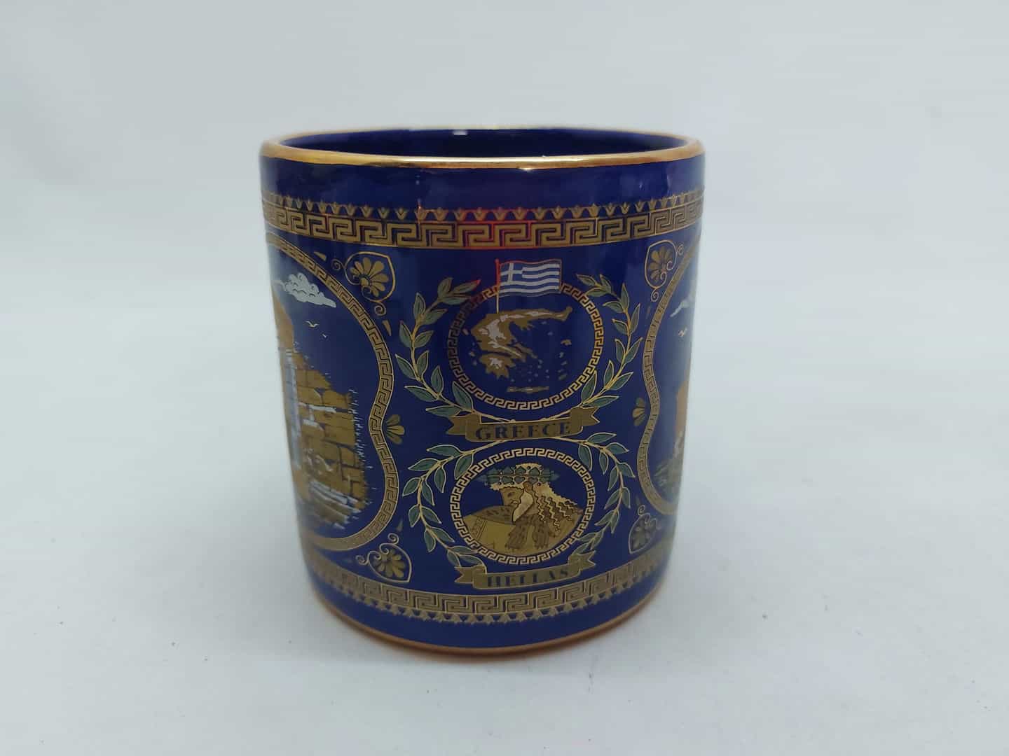 Χειροποίητη κούπα σε μπλε ρουαγιάλ χρώμα με χρυσό 24 Καρατίων 9x12x8cm