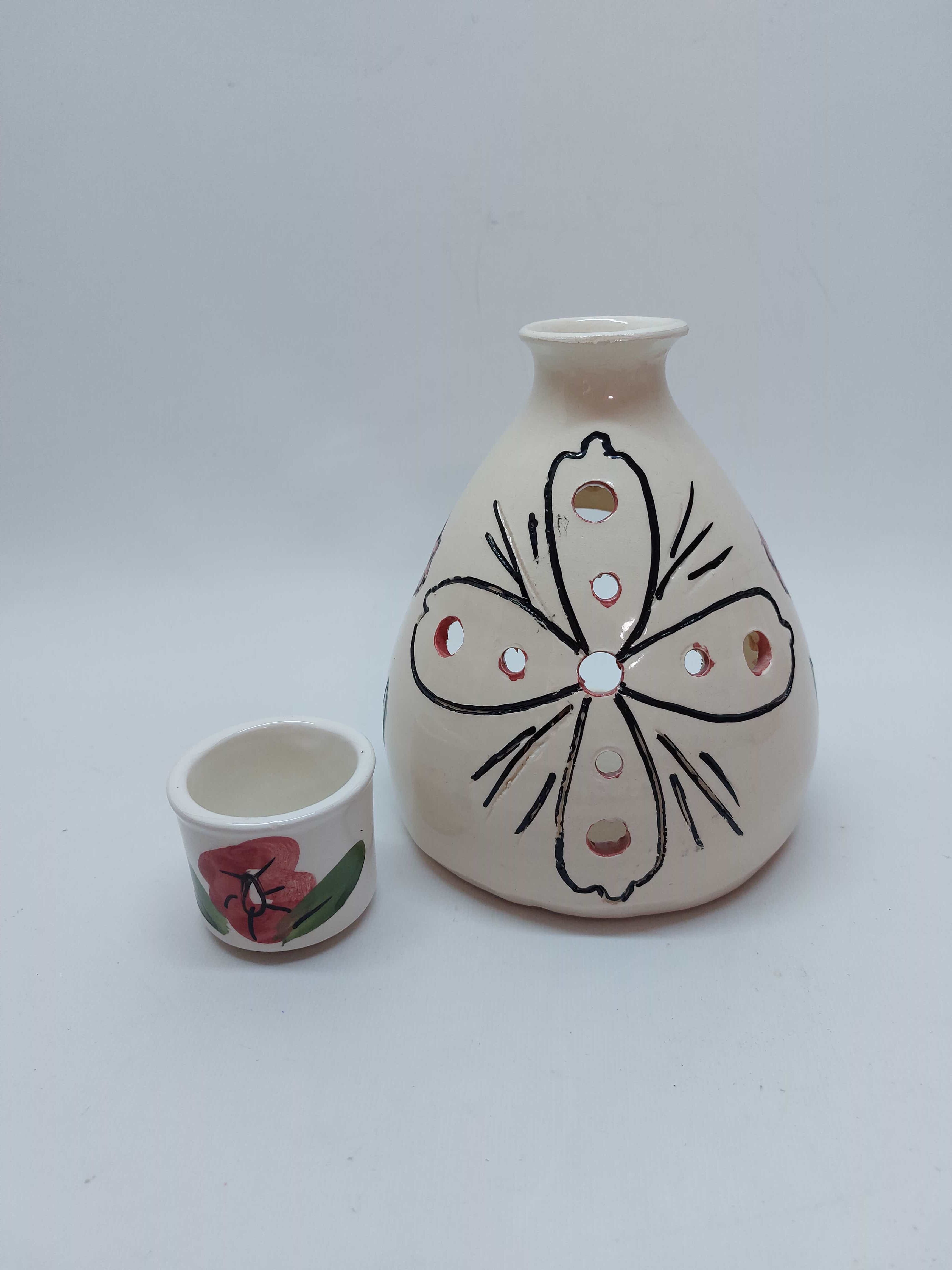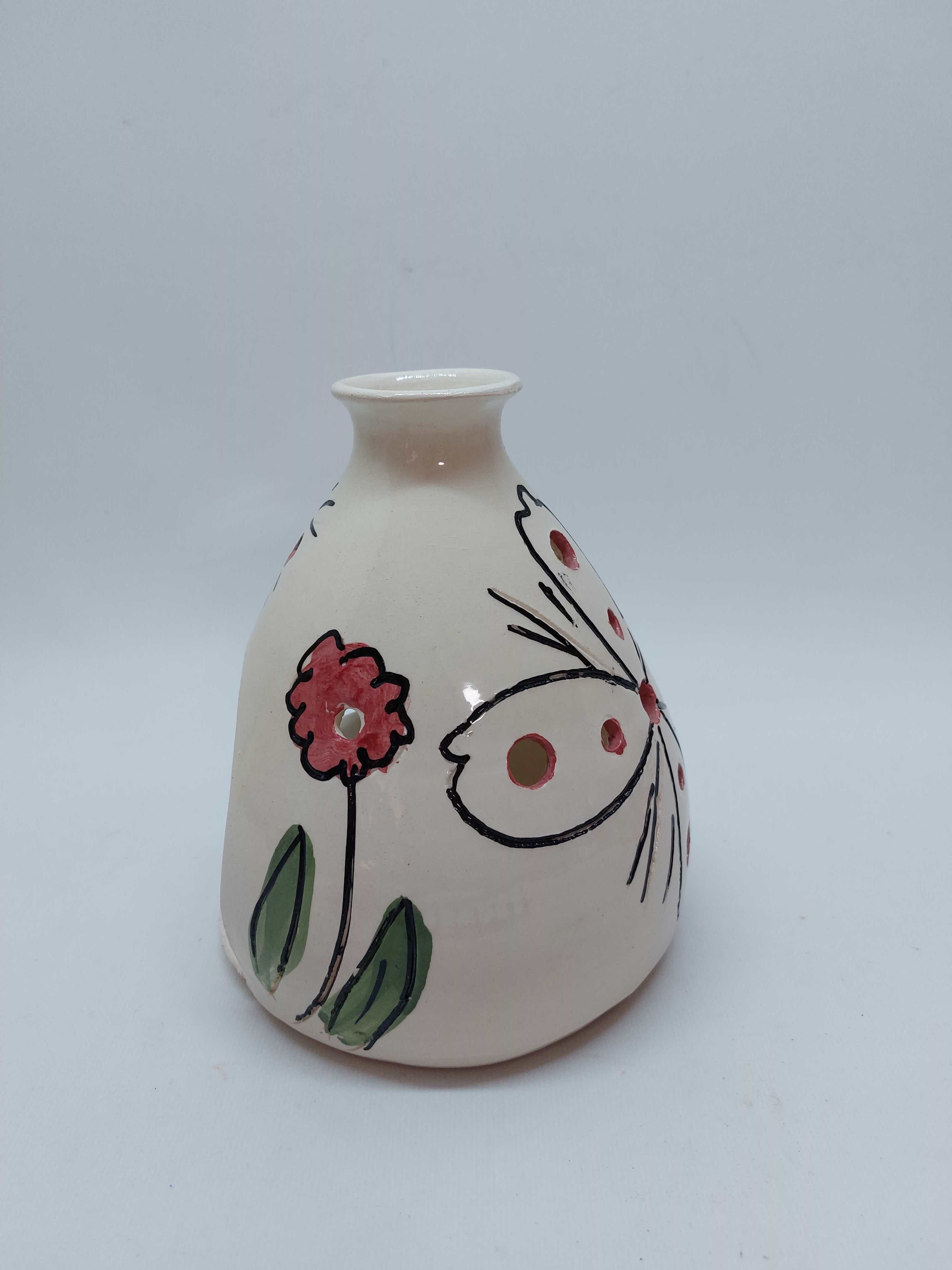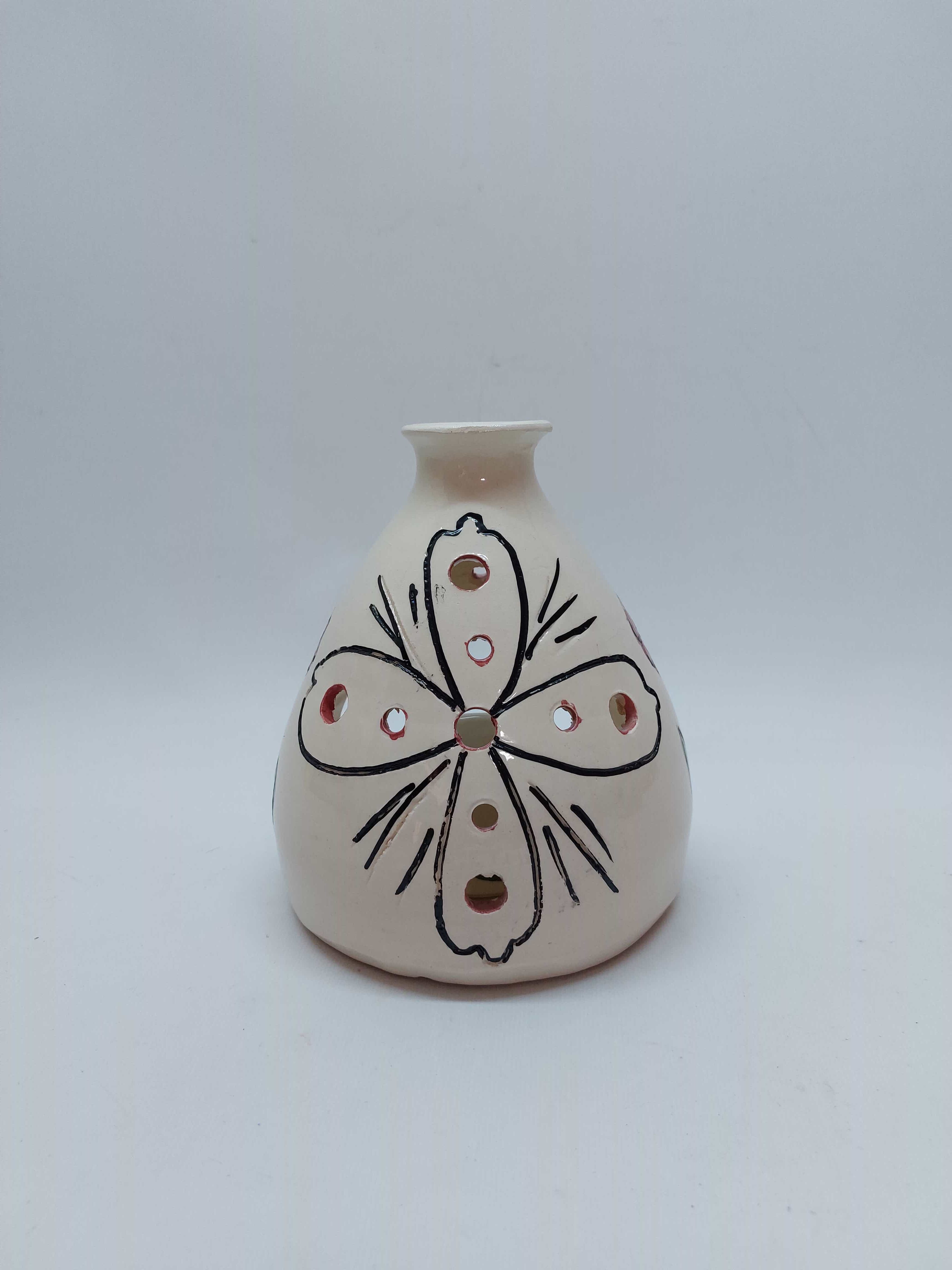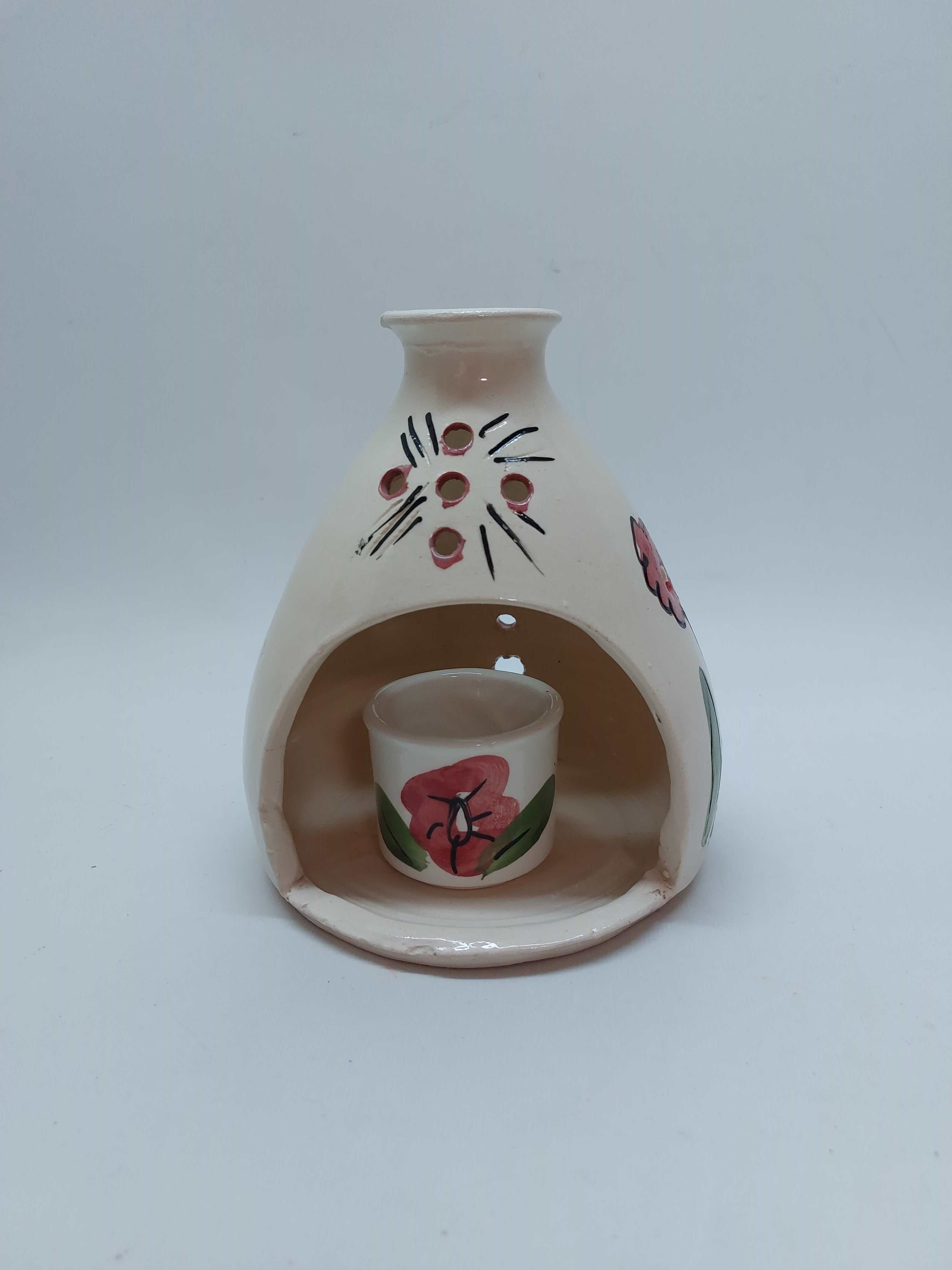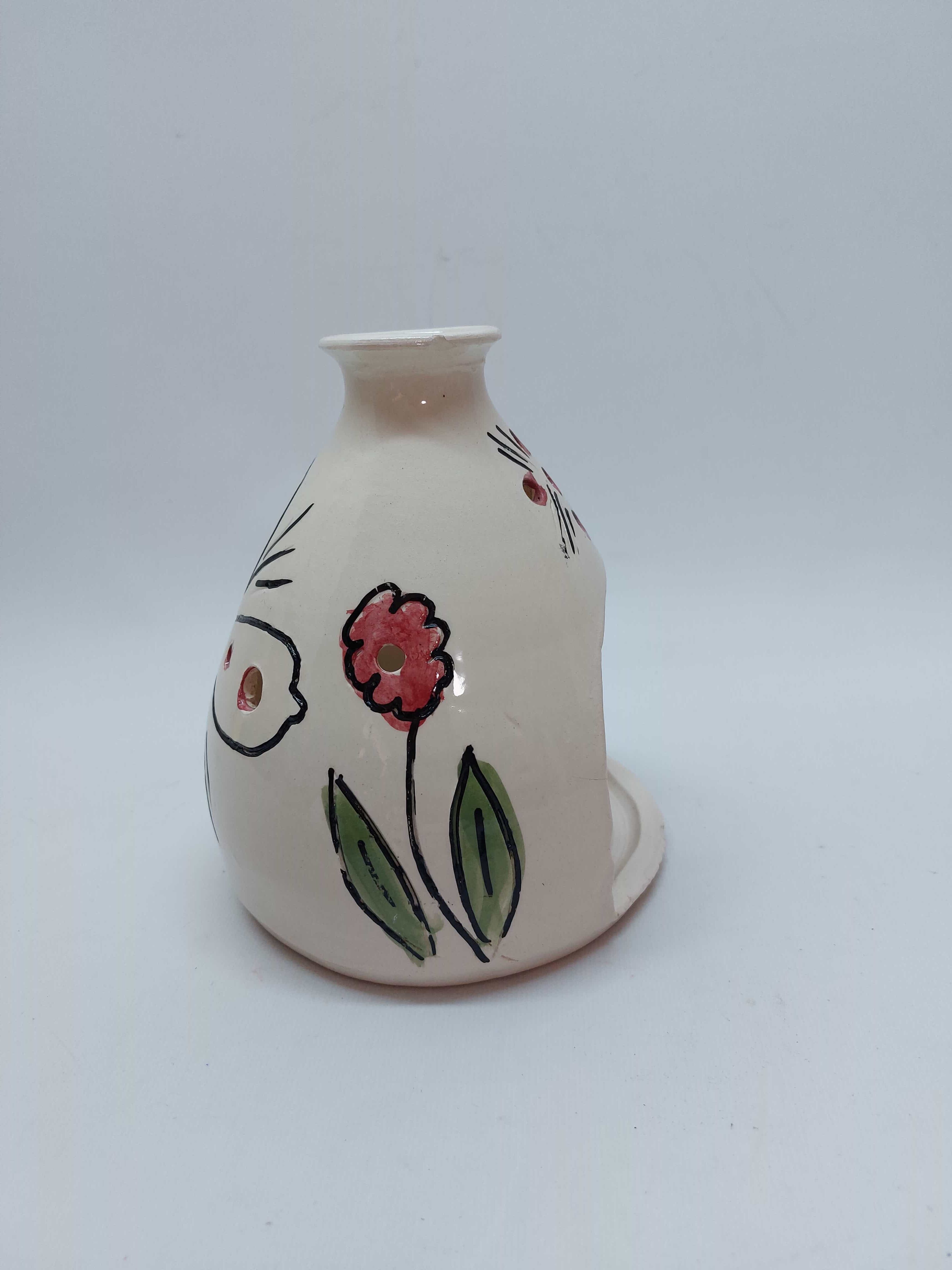 Χειροποίητο κεραμικό φαναράκι με βάση για ρεσώ και ζωγραφισμένα λουλούδια