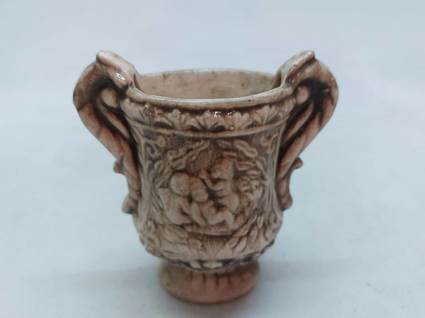 Χειροποίητο μικρό διακοσμητικό βάζο με αρχαιοελληνικό σχέδιο 9×8,5x7cm (υπάρχουν κάποια ελαττώματα, όπως δείχνουν και οι φωτογραφίες) Κωδικός προϊόντος: #s5612