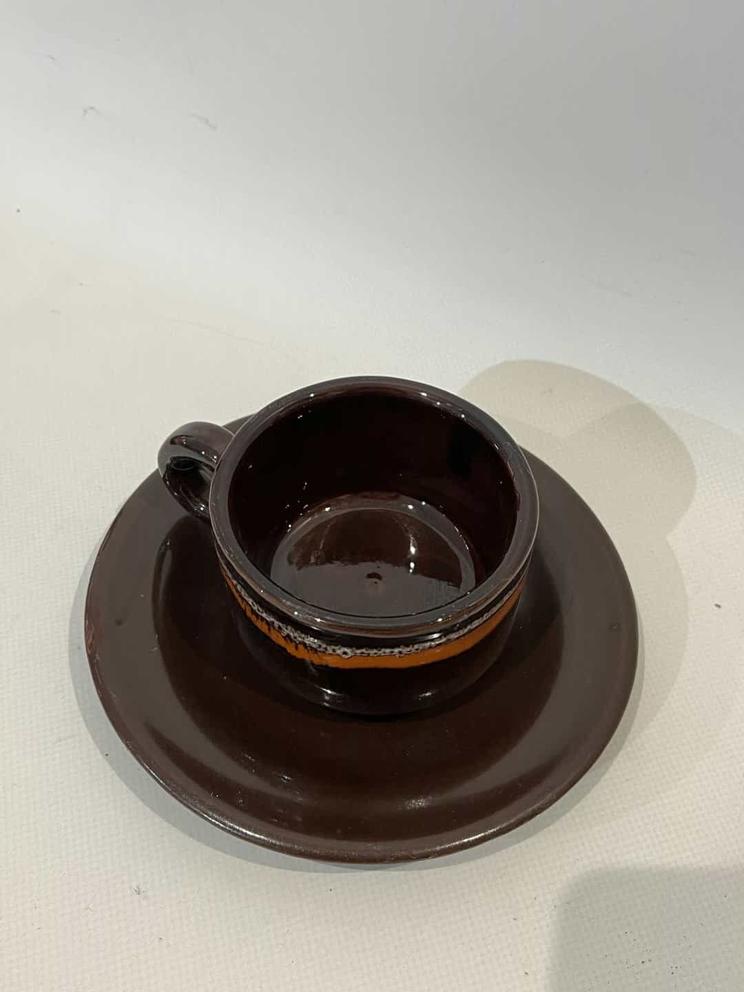 Χειροποίητο πήλινο φλιτζάνι του καφέ με το πιατάκι του