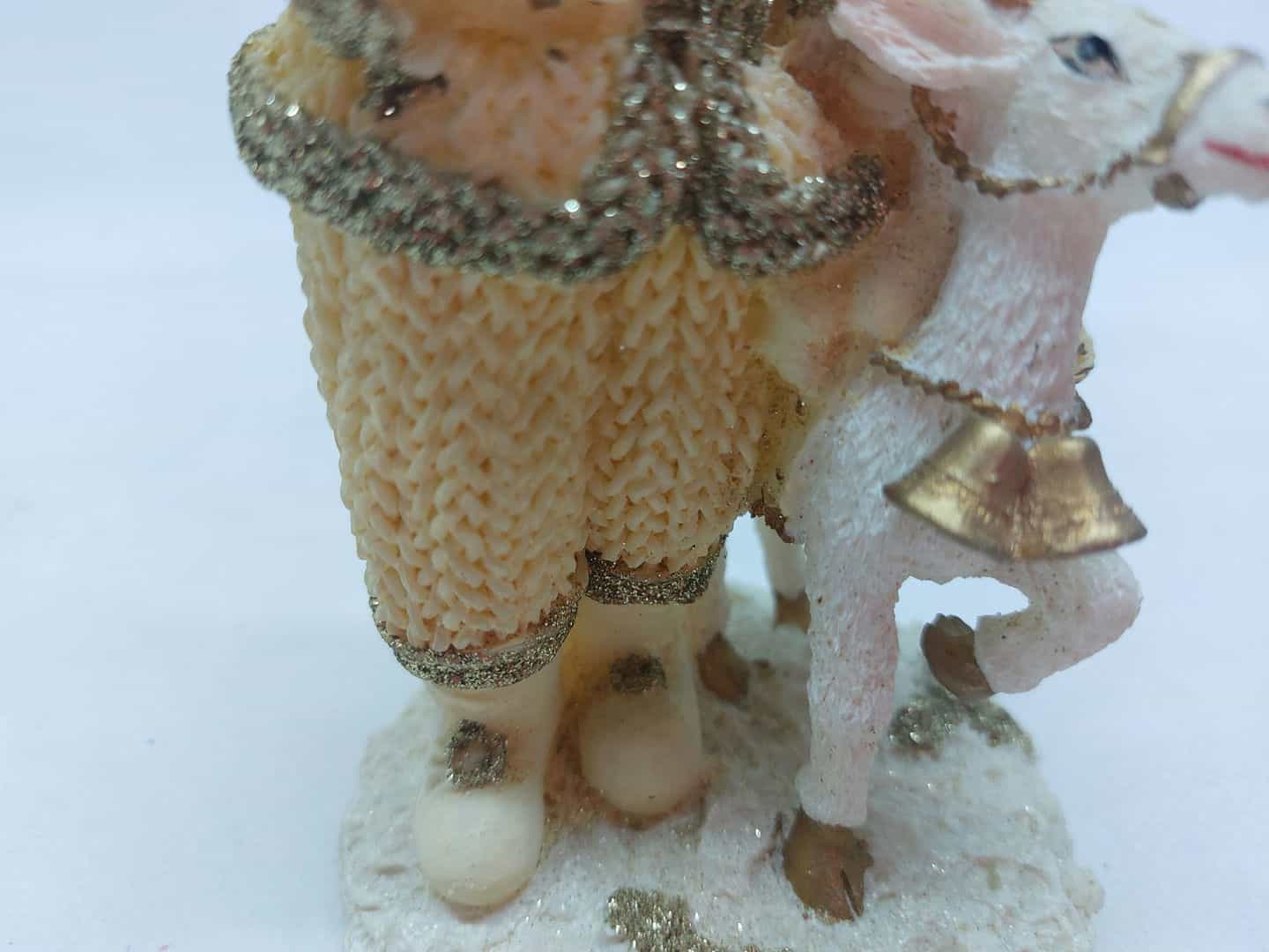 Χριστουγεννιάτικο επιτραπέζιο διακοσμητικό Άγιος Βασίλης με ελαφάκι σε μπεζ-χρυσή απόχρωση 15×7,5x8cm Κωδικός προϊόντος:#s5251