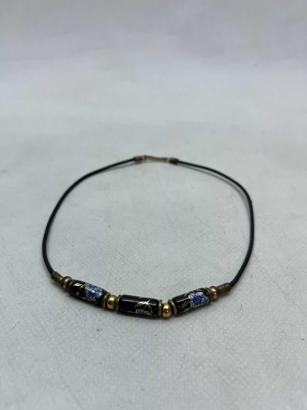 Boho κολιέ με ζωγραφισμένες χάντρες λουλούδια 40cm
