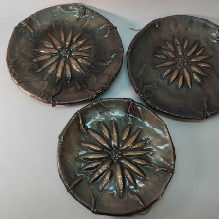 Vintage σετ 3 διακοσμητικά χάλκινα πιάτα τοίχου Ρώσικα Πιατιγκόρσκ 17εκ./19,5εκ. Κωδικός προϊόντος: #s15004