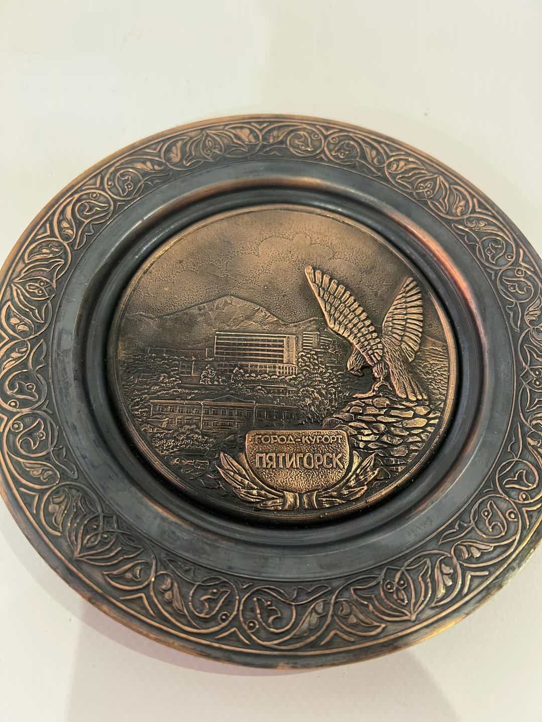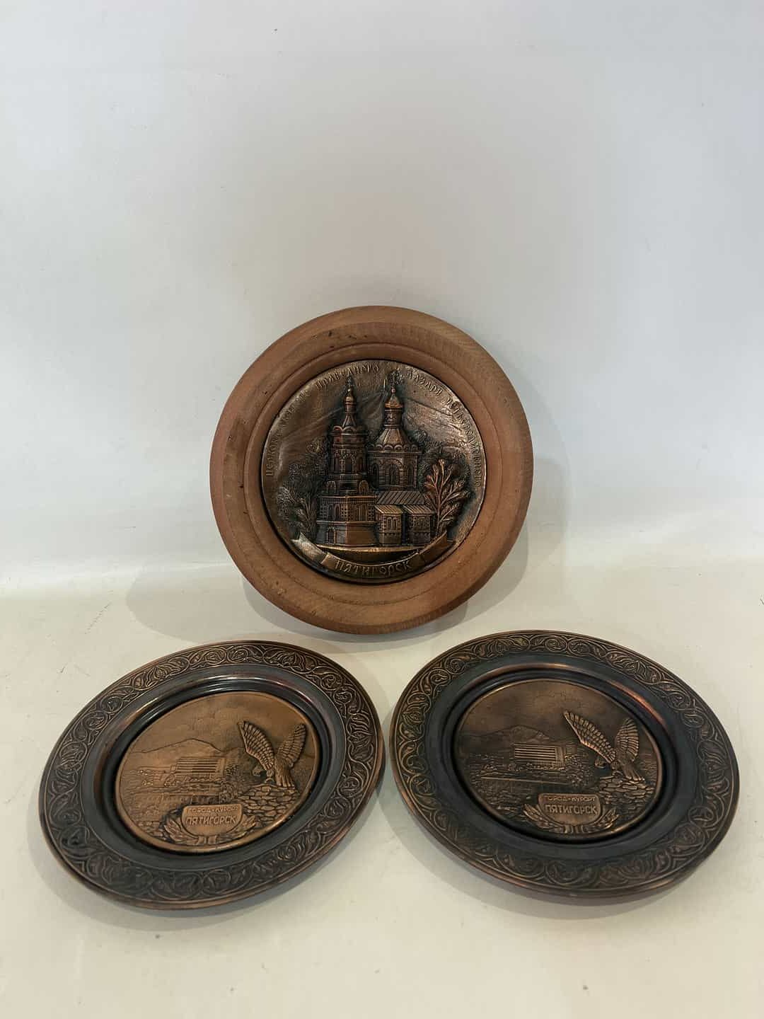 Vintage σετ 3 διακοσμητικά χάλκινα πιάτα τοίχου Ρώσικα Πιατιγκόρσκ