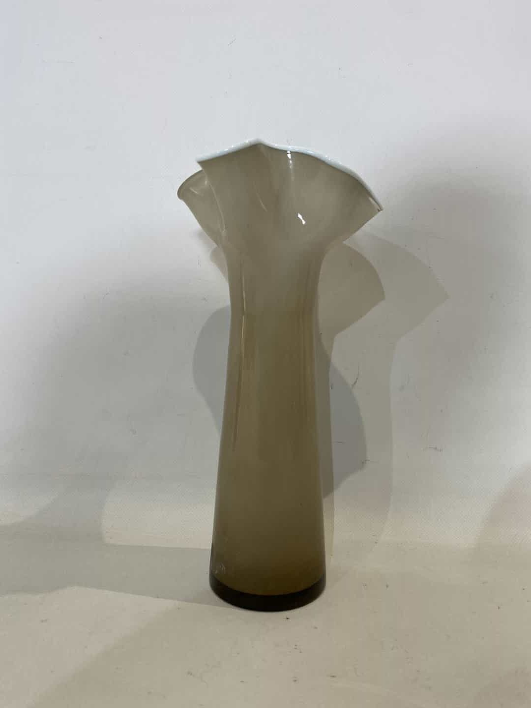 Vintage βάζο σε καφέ απόχρωση με βολάν λεπτομέρεια στο στόμιο του 28×15