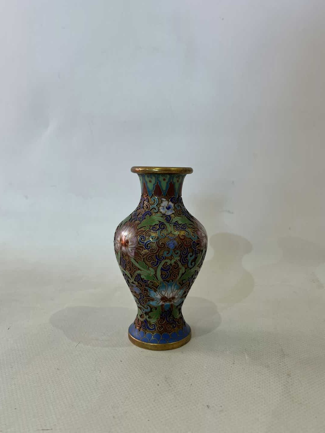 Vintage βάζο Cloisonne , με φλοράλ σχέδια 14×5