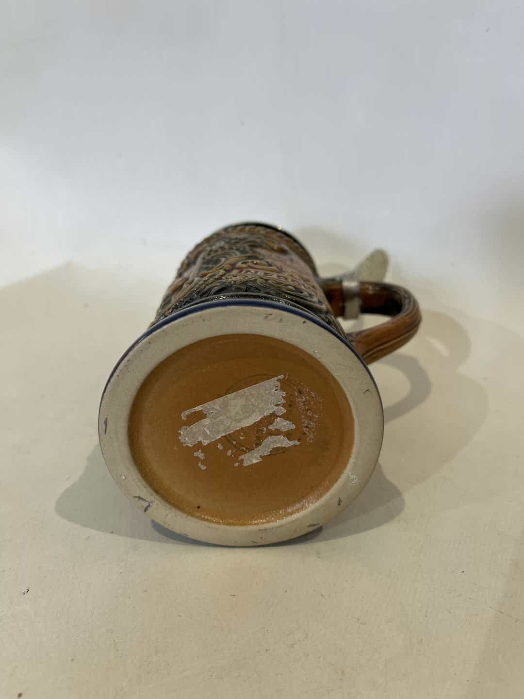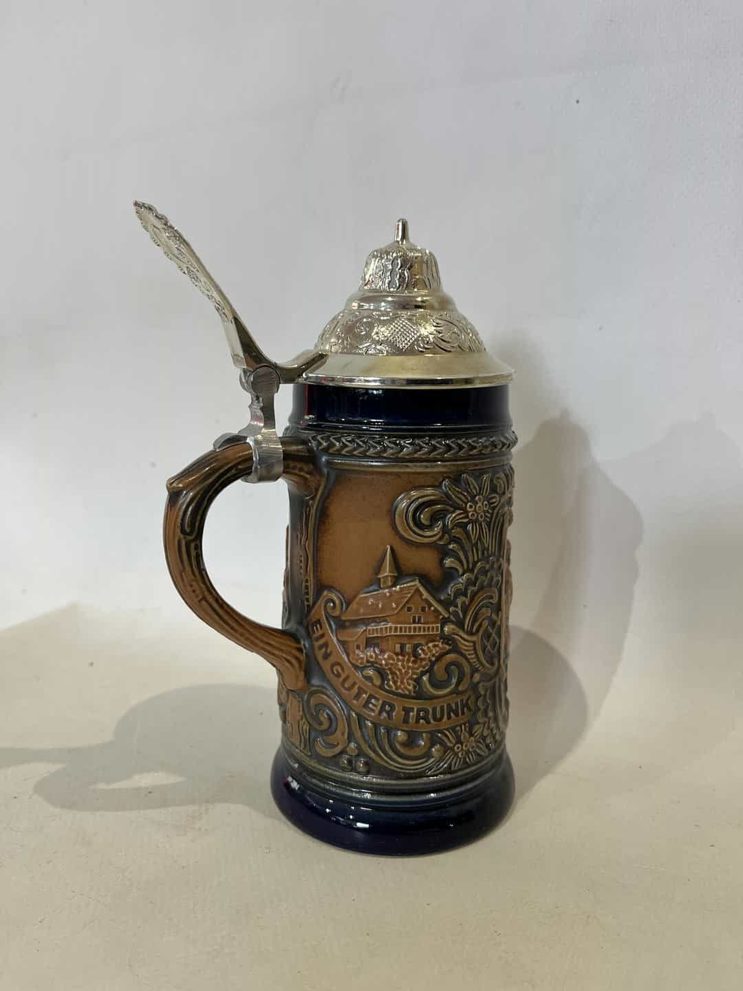 Vintage Γερμανικό ποτήρι μπύρας Gerz με ανάγλυφα σχέδια και καπάκι από κασσίτερο 18x11x7 Κωδικός προϊόντος: #s16796