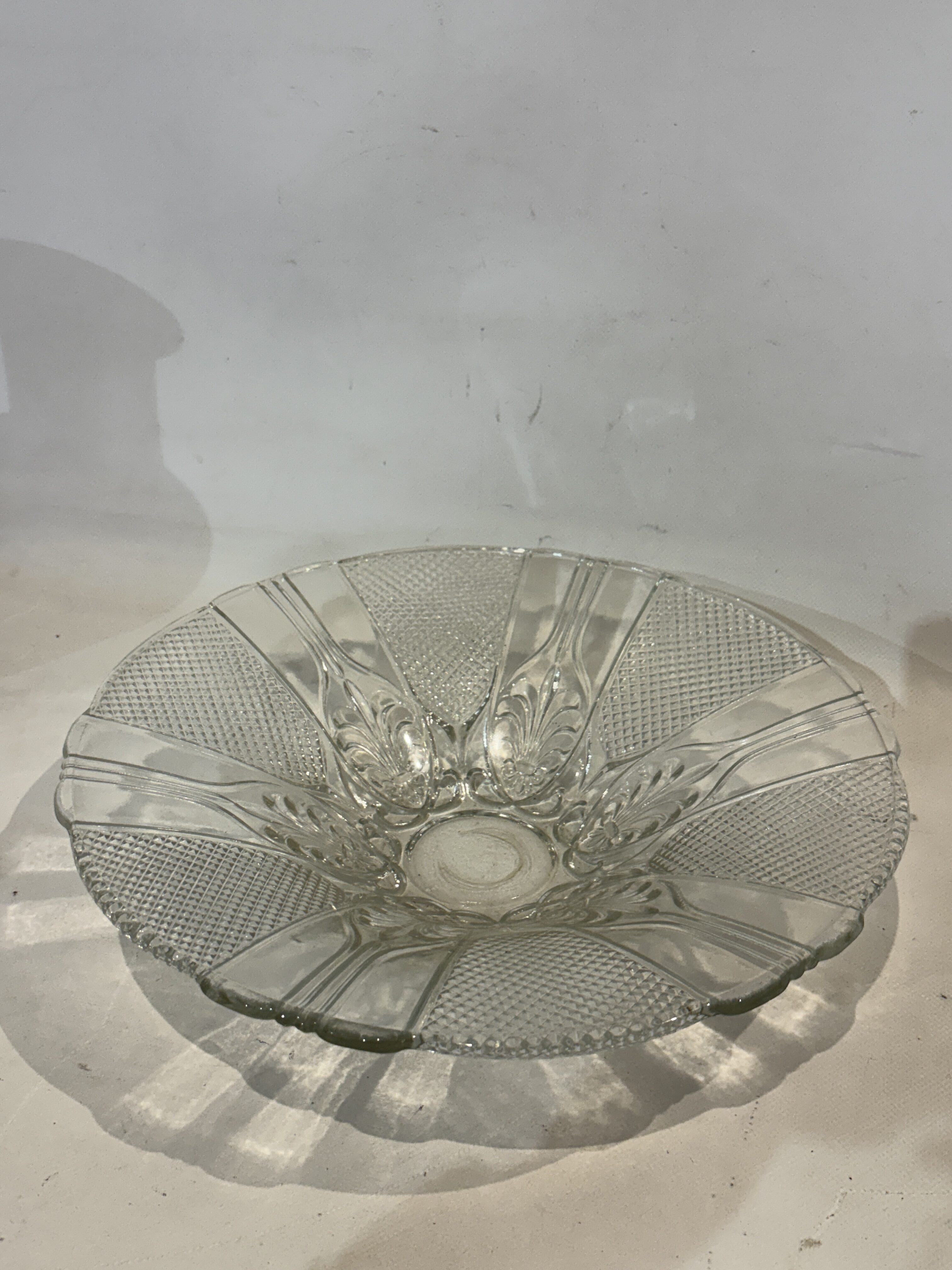 Vintage γυάλινη διακοσμητική πιατέλα , με ανάγλυφα σχέδια 7x34x34