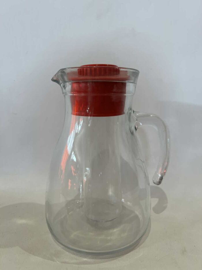 Vintage γυάλινη κανάτα με κόκκινο καπάκι για πάγο CERVE Italy 21×16  Κωδικός προϊόντος: #s15950