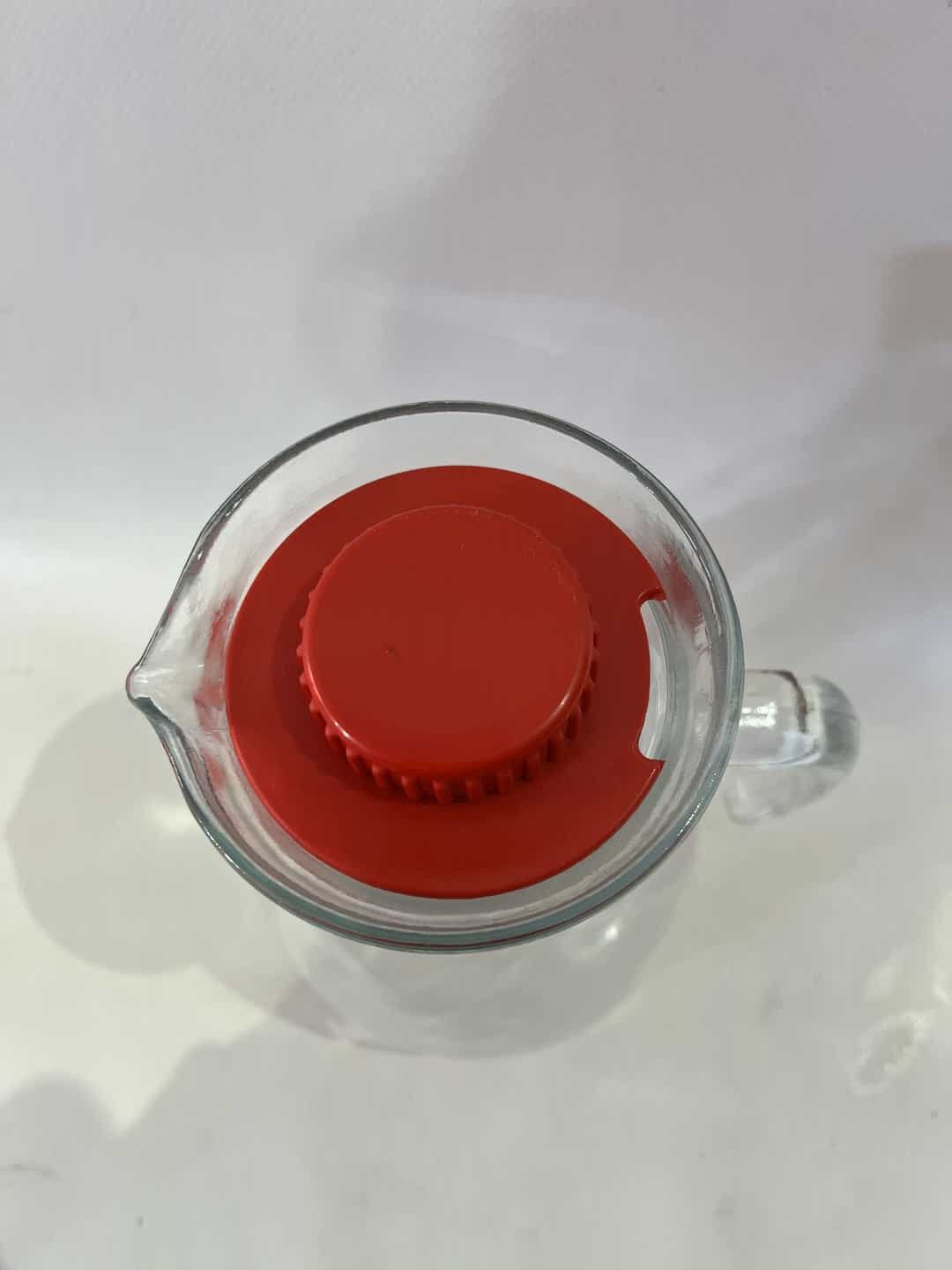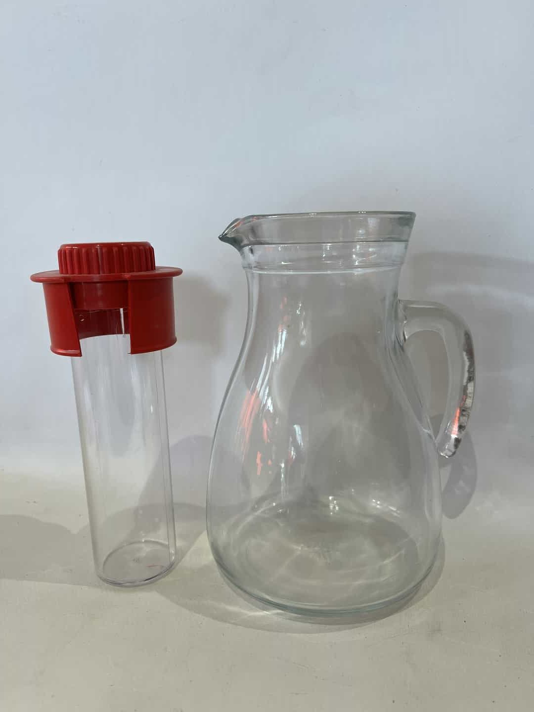 Vintage γυάλινη κανάτα με κόκκινο καπάκι για πάγο CERVE Italy 21×16